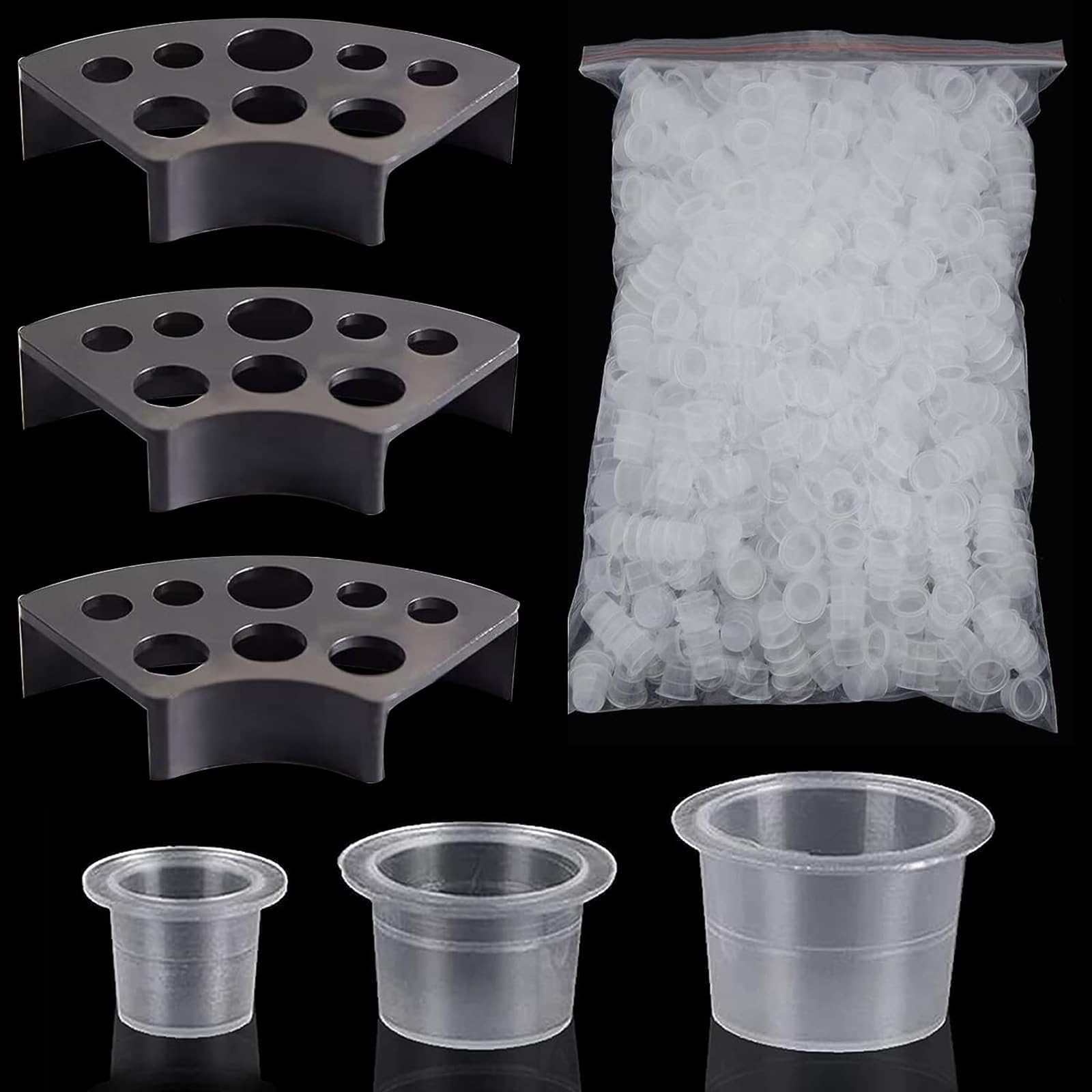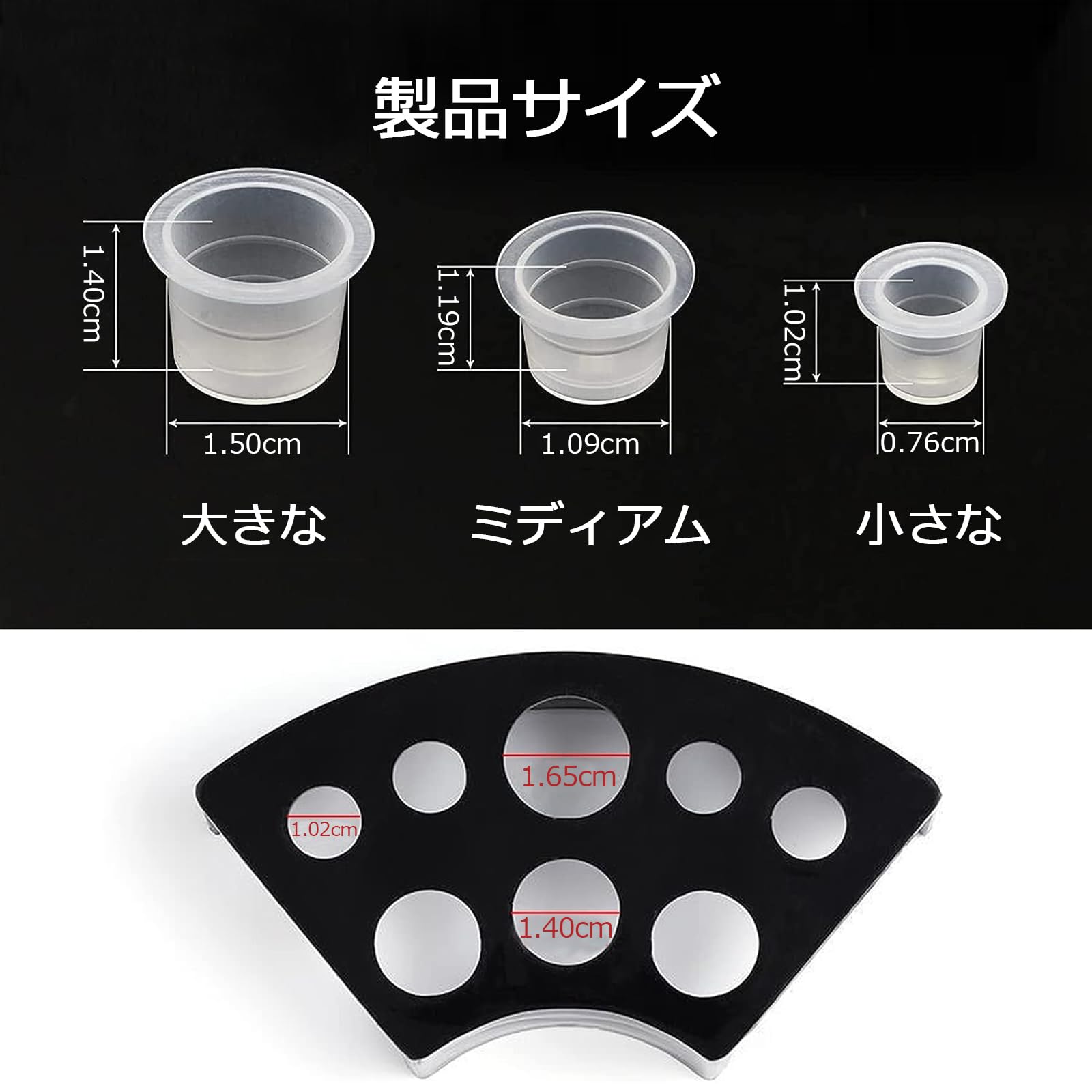 3個 ブラックタトゥーカップホルダー タトゥーインクキャップ300個付き スモール100個 ミディアム100個 ラージ100個 タトゥーインクキャップ タトゥーインク容器 タトゥーキット タトゥー用品