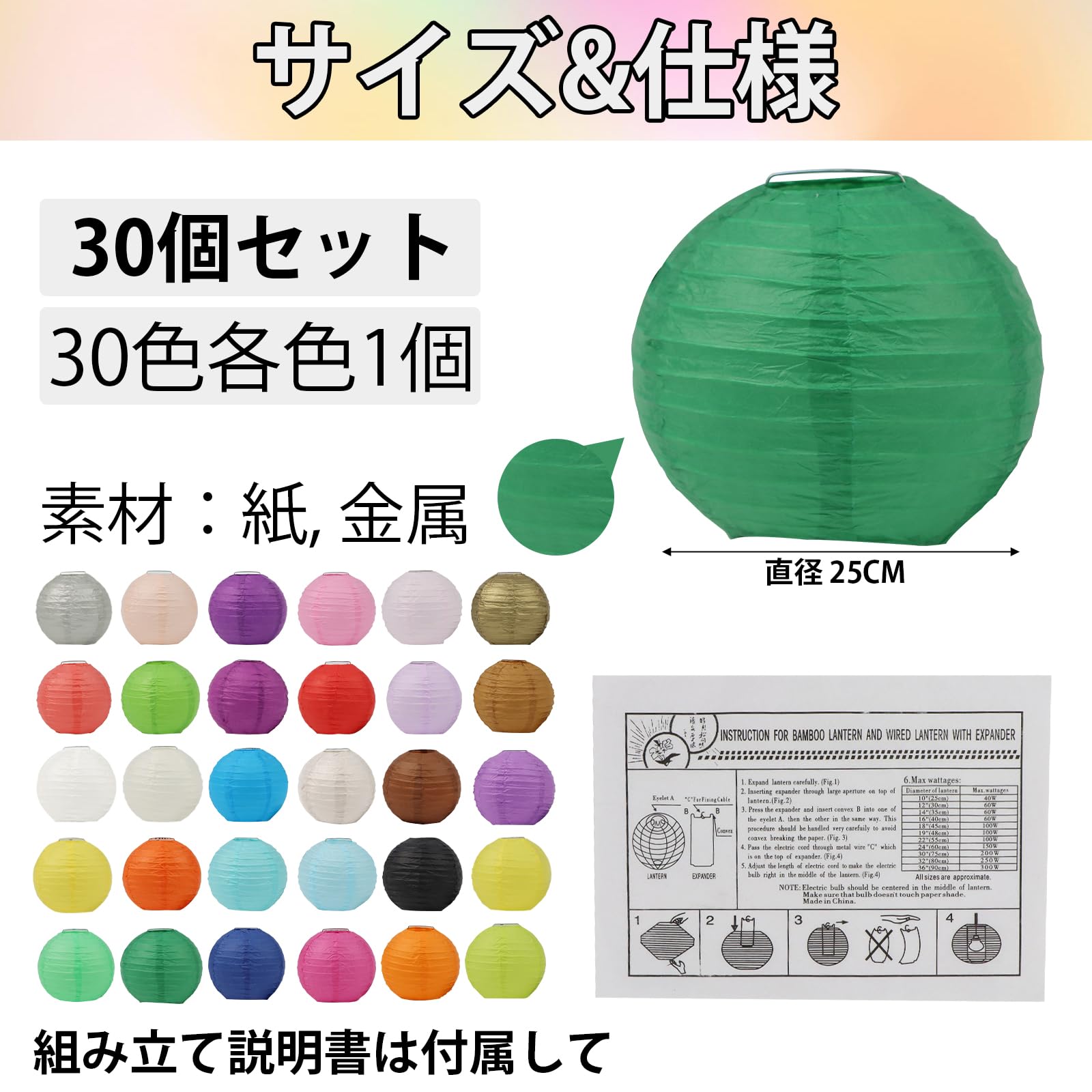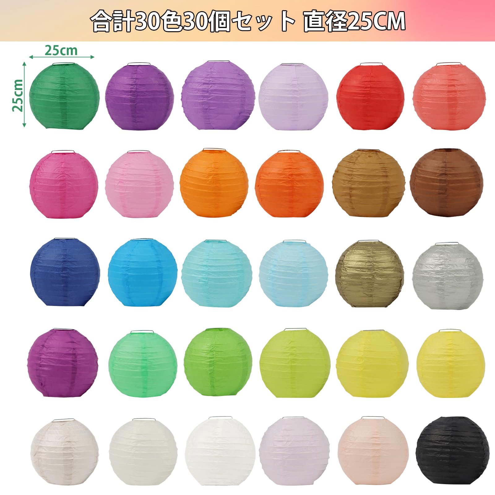 ??【豊かな色彩】赤、オレンジ、黄、ミントグリーン、緑、空色、濃紫、薄紫、白、ピンク、グレー、 シルバー 、カーキ、コーヒーなど30色紙提灯合計30個セット入り。これらのカラフル紙提灯は別々に使うことはもちろん、縦に一つずつ繋いて意外の装飾効果が見えます。