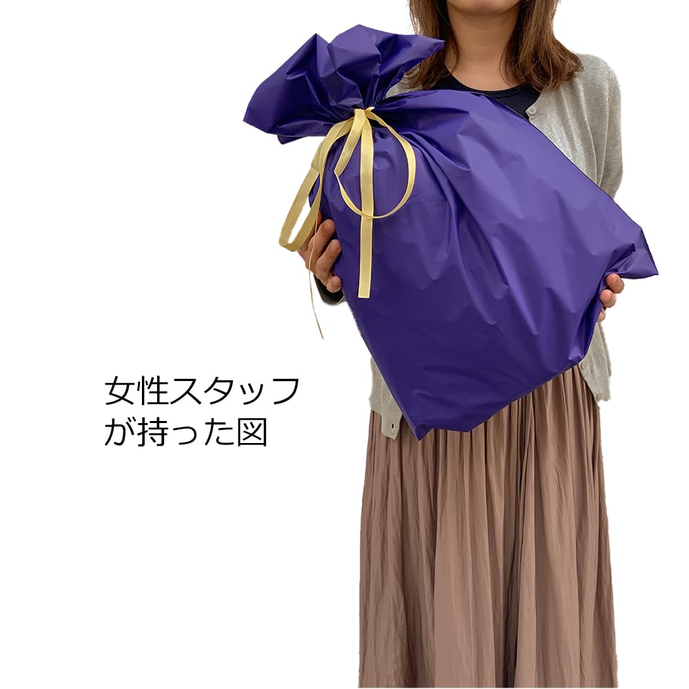 ラッピング袋 袋 中 梨地 光沢 W450×H560 mm (紫) 日本国内検品済みで安心品質 プレゼント ギフト 大きい 中サイズ リボン付 クリスマス ハロウィン 誕生日 包装