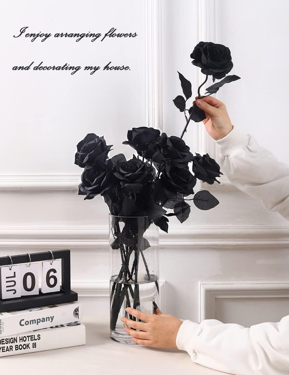 【幅広い用途」さまざまなシーンで活躍します。玄関や店舗、結婚式、ダイニングルーム、センターピース、ヘッドバンド、または誕生日パーティー、ハロウィーン、家の装飾のためのその他の花の装飾に最適な黒い造花です。また、プロポーズや愛妻の日、バレンタインデー、お誕生日のプレゼントにも最適です。