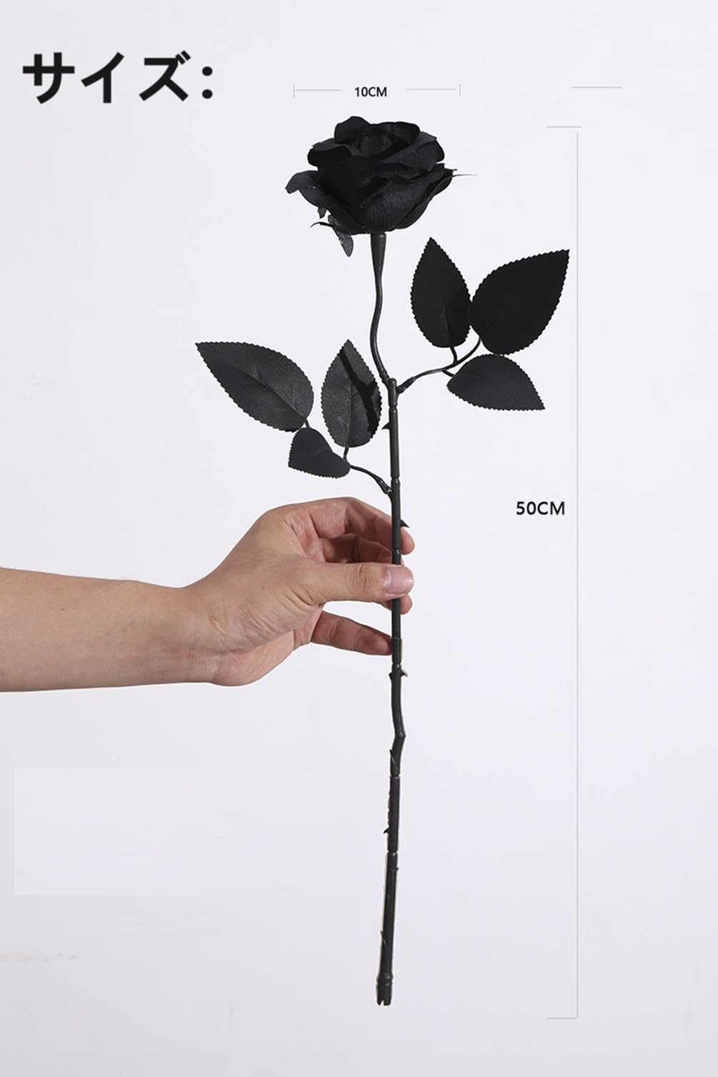 【商品仕様】素材:シルク+プラスチック、サイズ:長さ:50cm、花の直径:約10cm、セット内容:9本、カラー:ブラック。