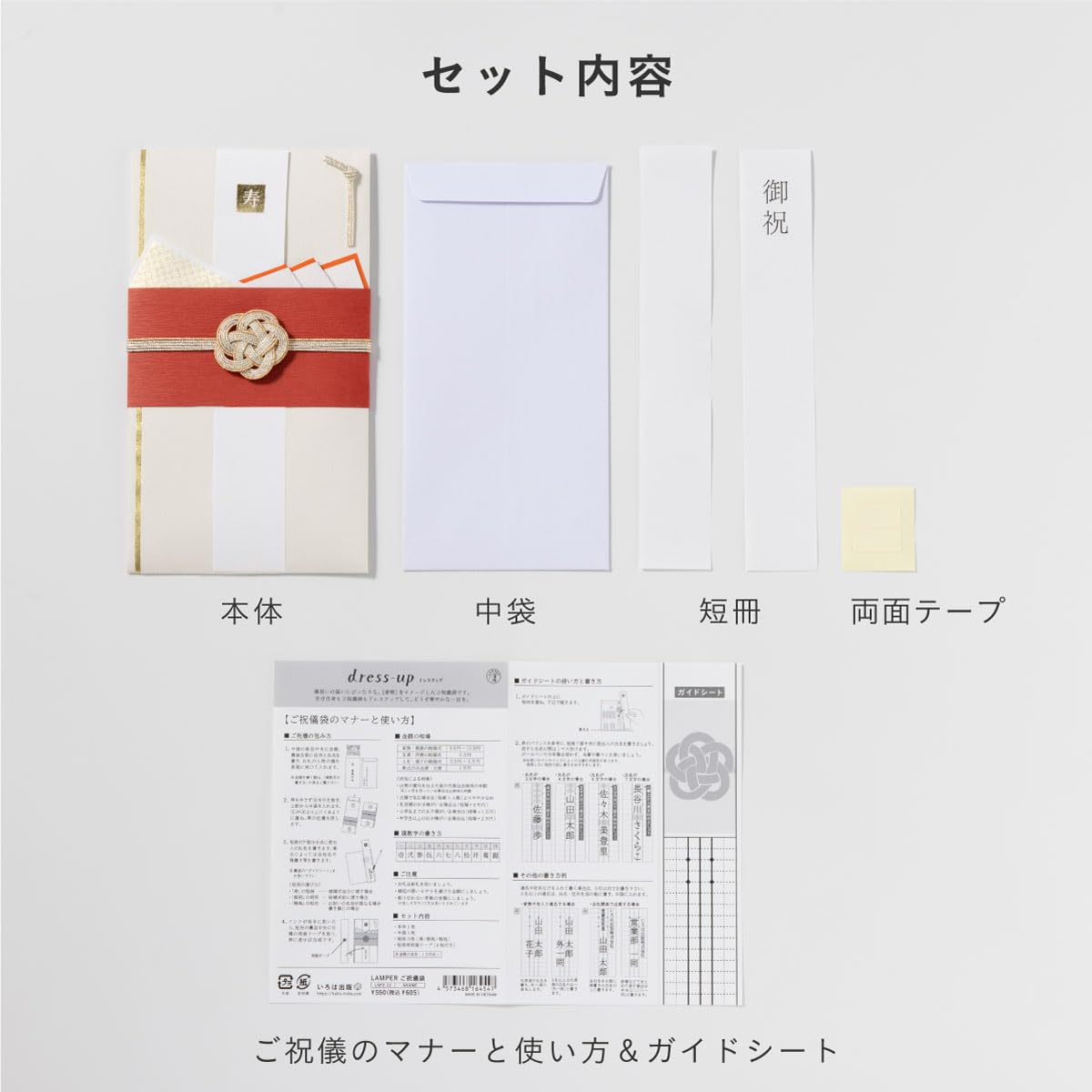 【セット内容】本体×1中袋×1短冊×3(寿/御祝/無地) 短冊用両面テープ×1