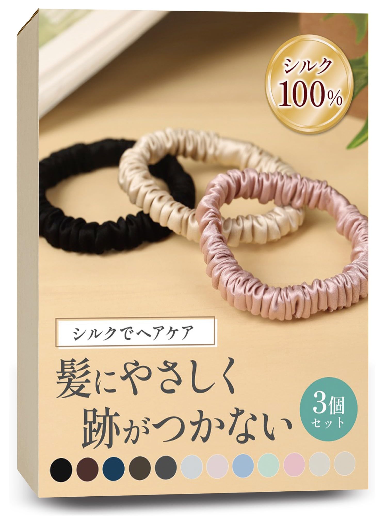 【努力特価】【ヘアケアのプロ監修】 シルク ヘアゴム シュシュ 髪ゴム シルクゴム 跡がつかない SILK100% おしゃれ 太め 3個セット (アソートB)
