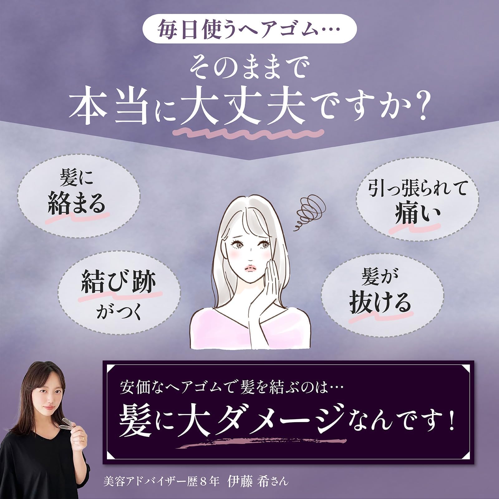 ?【跡がつかない】SEAWINDのシルクヘアゴムは、厚みが1cm以上。シュシュのように締め付けが分散されるため、髪に跡がつきにくいのです。