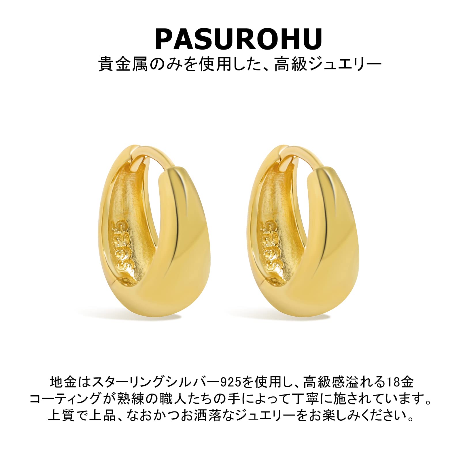 Pasurohu ピアス K18 18金コーティング シルバー925 8.5mm 小さめ 小ぶり 人気 フープピアス レディース しずく型 ローズゴールド ゴールド プラチナ 金属アレルギー対応 本物ジュエリー