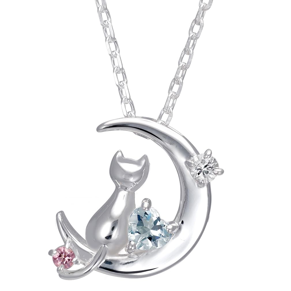 [未来天使] ネックレス レディース 三日月 猫 シルバー 選べる 誕生石 10月 ピンクトルマリン 未来1165WEB_PT お好みの誕生石が選べる、今大人気のレディース用、ネコモチーフネックレス。キュートなネコと神秘的な三日月の相性はバツグン!正面からも斜めから見ても胸元を際立立てます。