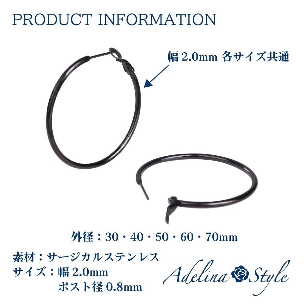 Adelina Style(アデリナスタイル) ピアス レディース 人気 幅2mm 大きめピアス フープピアス 1ペア リング ピアス サージカルステンレス 金属アレルギー対応