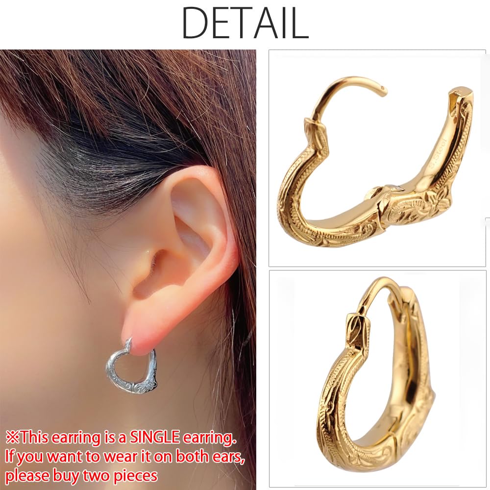 Piena フープピアス レディース サージカルステンレス316L製 片耳用 1個売り ハワイアンジュエリー オープンハート 金属アレルギー対応