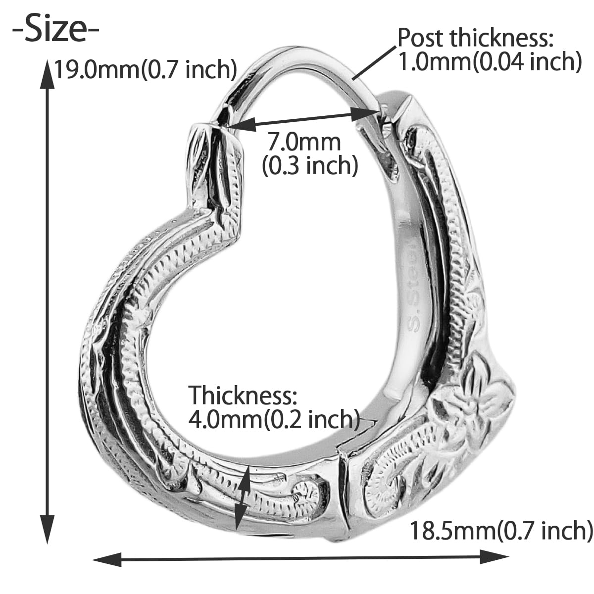 素材 サージカルステンレス316L製 サイズ 縦:約19.0mm 横:約18.5mm 厚み:約4.0mm ポスト長さ:約7.0mm ポスト太さ:約1.0mm