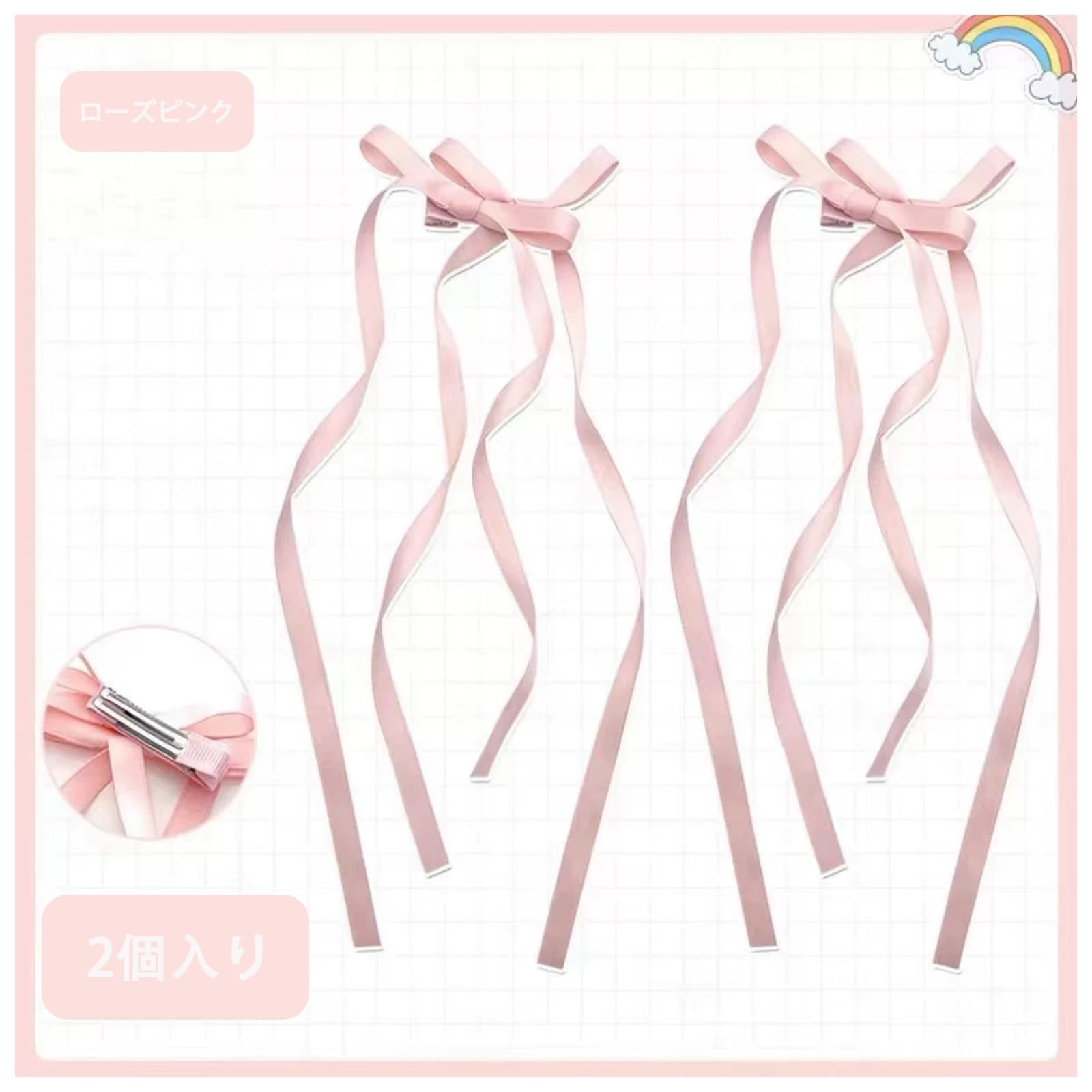 MISS MUMUヘアアクセサリー ヘアクリップ リボンクリップ リボン 2個セット 髪飾り リボンピン ヘアアレンジ バレッタ まとめ髪 ヘアピン 女性 レディース 結婚式 パーティー かわいい 人気 韓国風(1459ローズピンク-Rose Pink2)