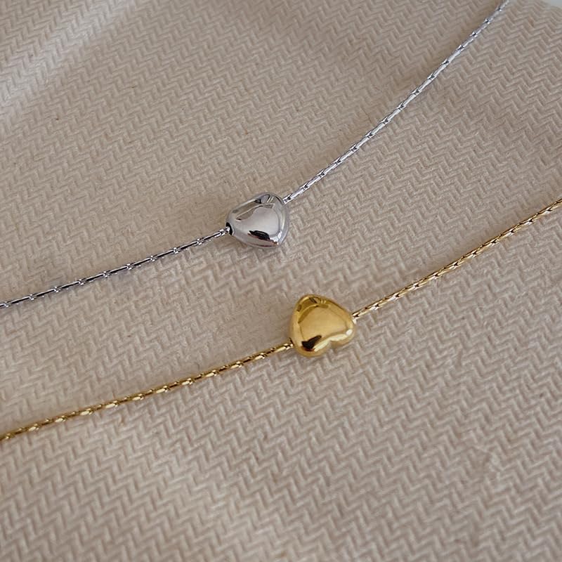 mellowact(メローアクト) ステンレス ネックレス アレルギー対応 サージカル 316L つけっぱなし ハート 立体的 小さい ゴールド シルバー 華奢 チェーン