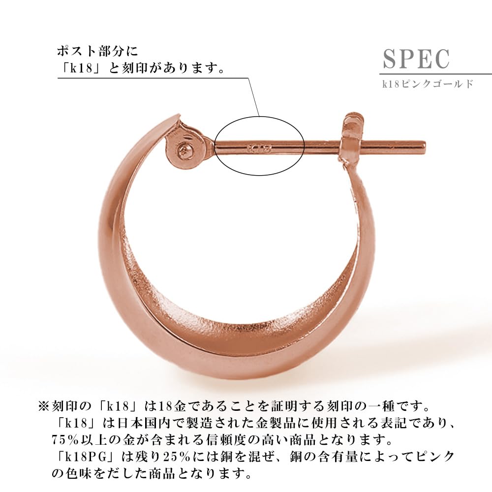 [OKKO] ピアス フープ リング 18金 金属アレルギー対応 レディース フープピアス 小さめ キャッチレス ギフト ピンクゴールド 13㎜×5㎜ 【金属アレルギー対応】18金素材のアレルギーフリーな日本製ピアスを両耳分ワンセットで。デザイン部もピアスポストもk18なので安心してご使用頂けます。 【素材】デザイン部・ピアスポスト:18金(k18)ピンクゴールド ポストに地金の打刻がございます。