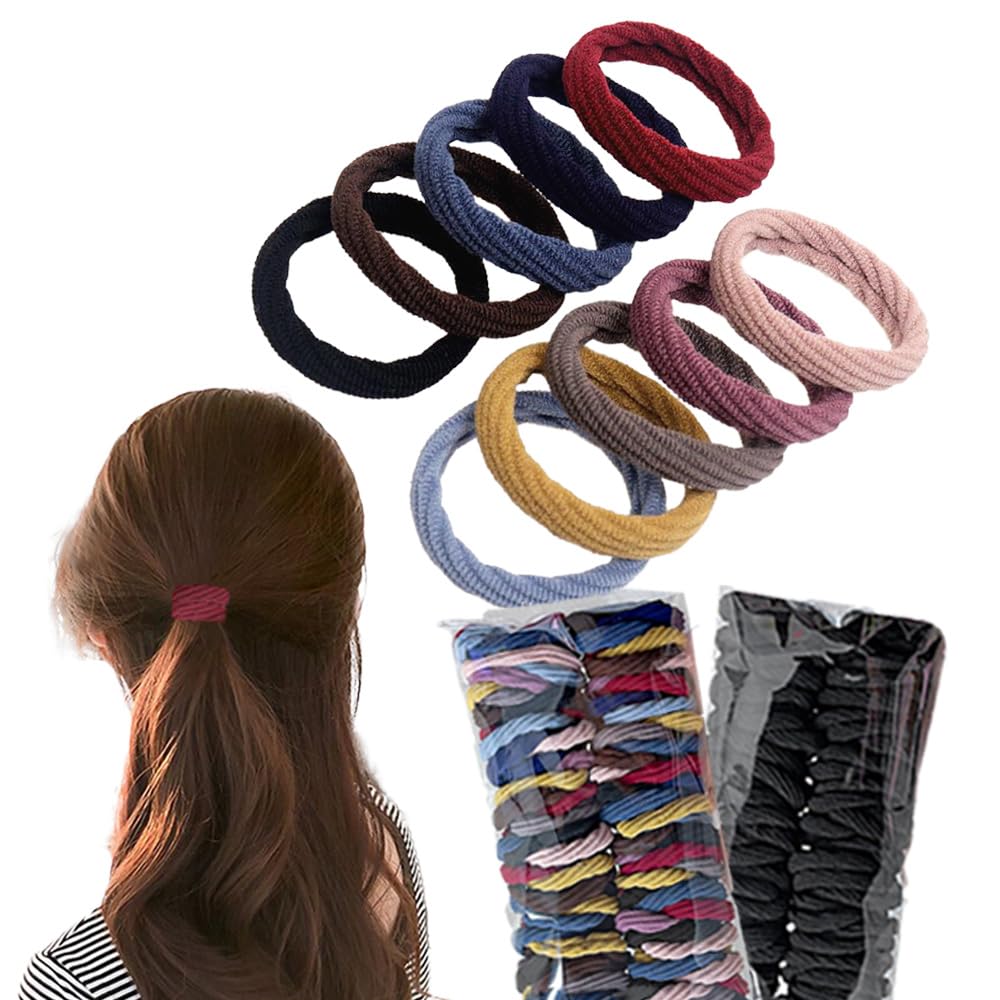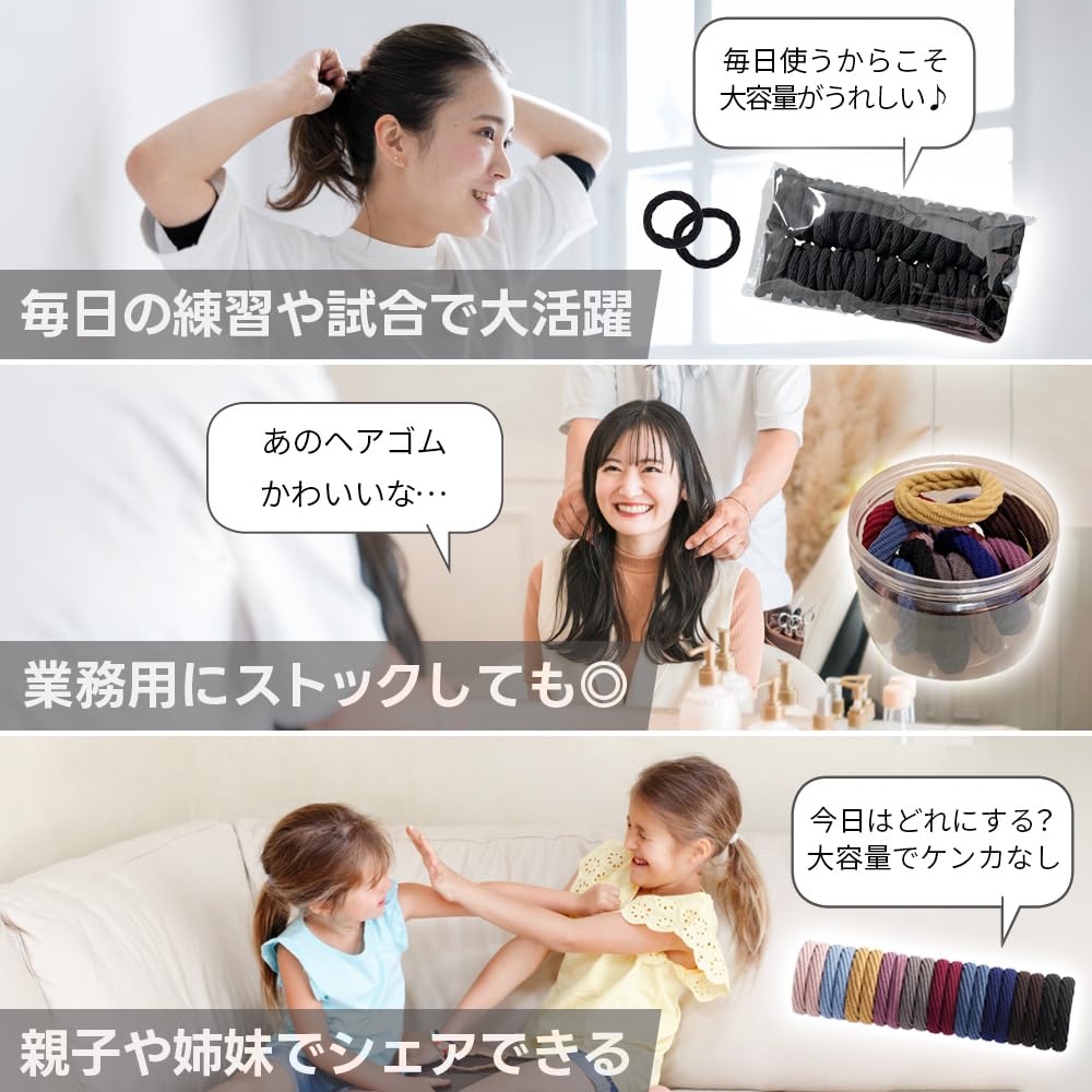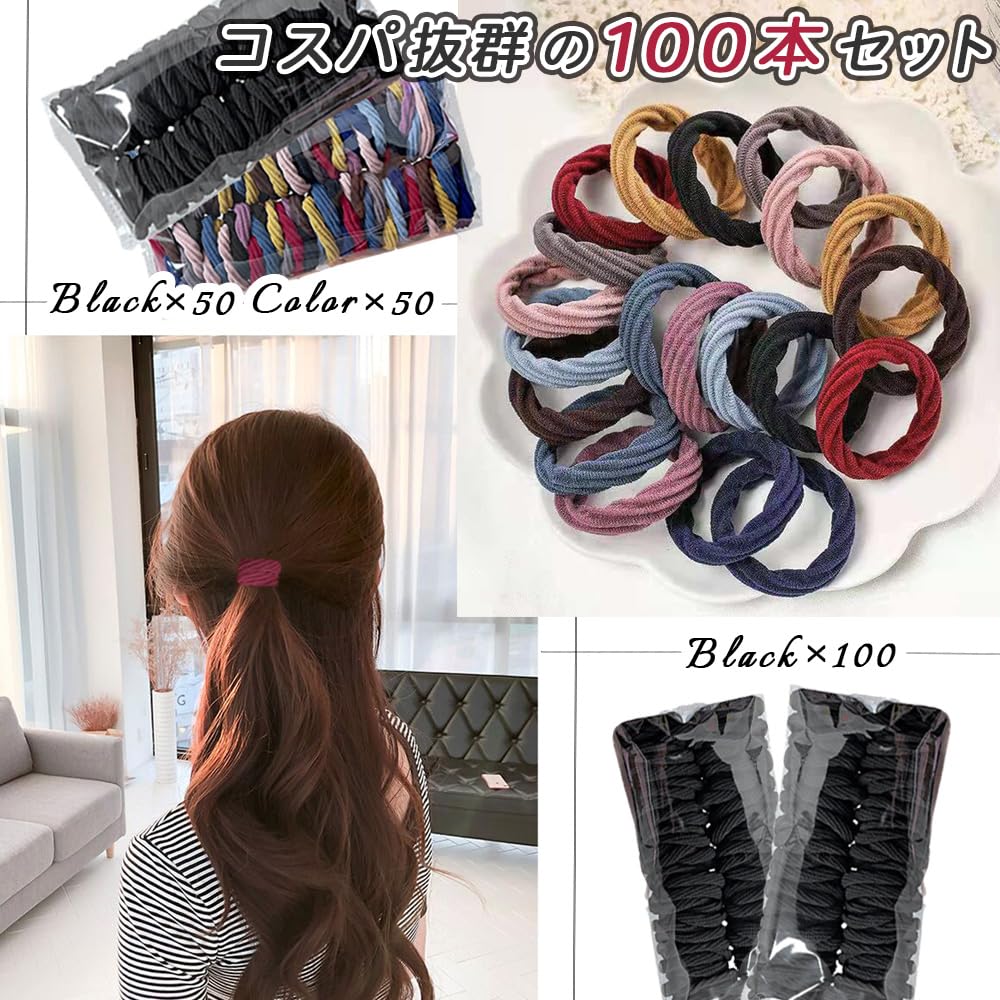 【努力特価】ロドリーミシェ 大容量 100本 髪ゴム ファミリーパック ヘアリング 業務用 ヘアゴム 太め 丈夫な 跡がつかない 髪 ゴム オシャレ 髪留め ポニーテール 大人 子供 No92 黒 ミックス