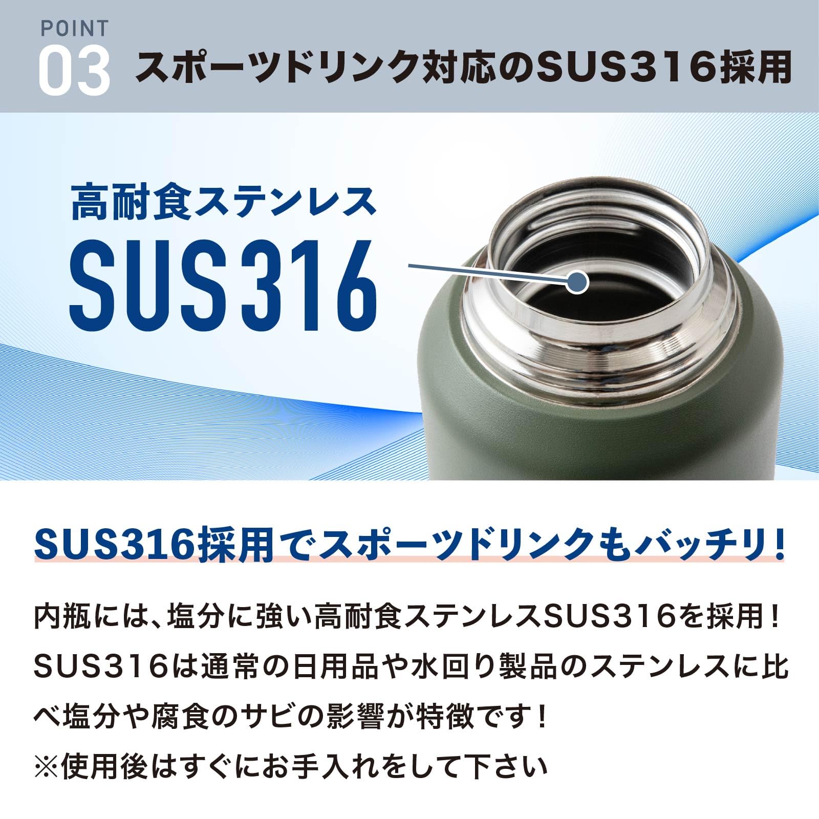 【特殊ステンレス使用でさびにくい】内瓶には塩分に強い高耐食ステンレスを使用しているので、スポーツドリンクや経口補水液も使用可能です。
