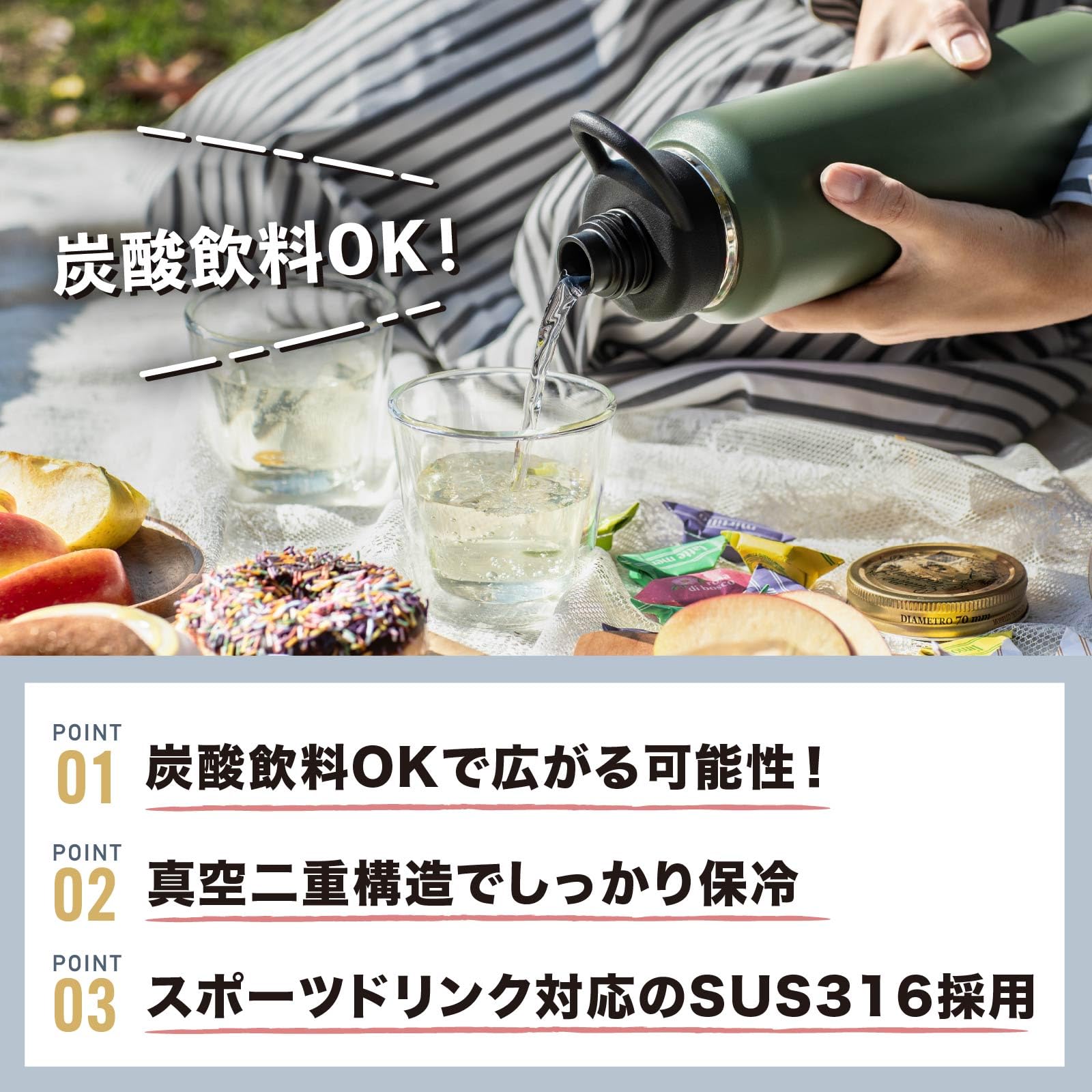 【炭酸を持ち運べるボトル】ボトルの内圧が大きくなるとパッキンから圧力を逃がす構造で、炭酸が抜けにくい水筒です。