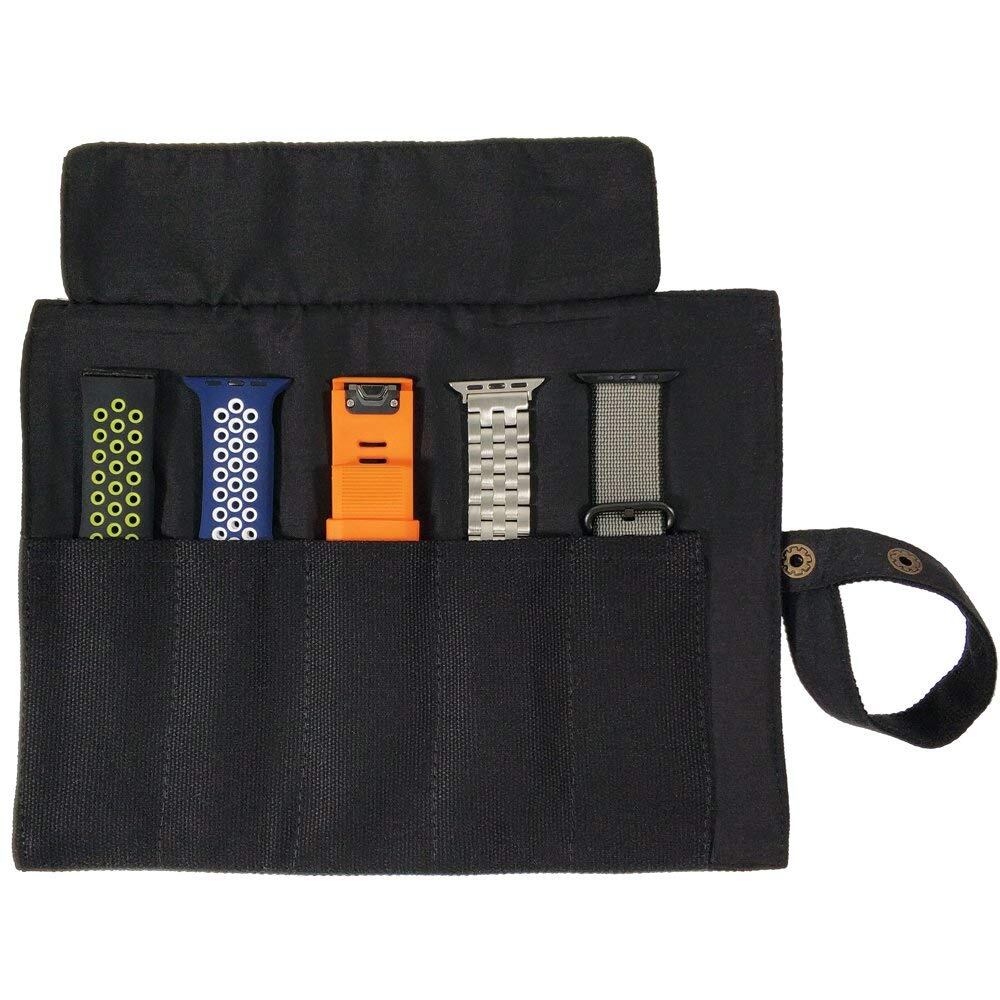 スマートウォッチバンド 収納バッグ 5本格納 キャンバスポータブル ウォッチバンド ホルダー Apple/Garmin/Samsungなどのスマートウォッチ用交換バンドを保管