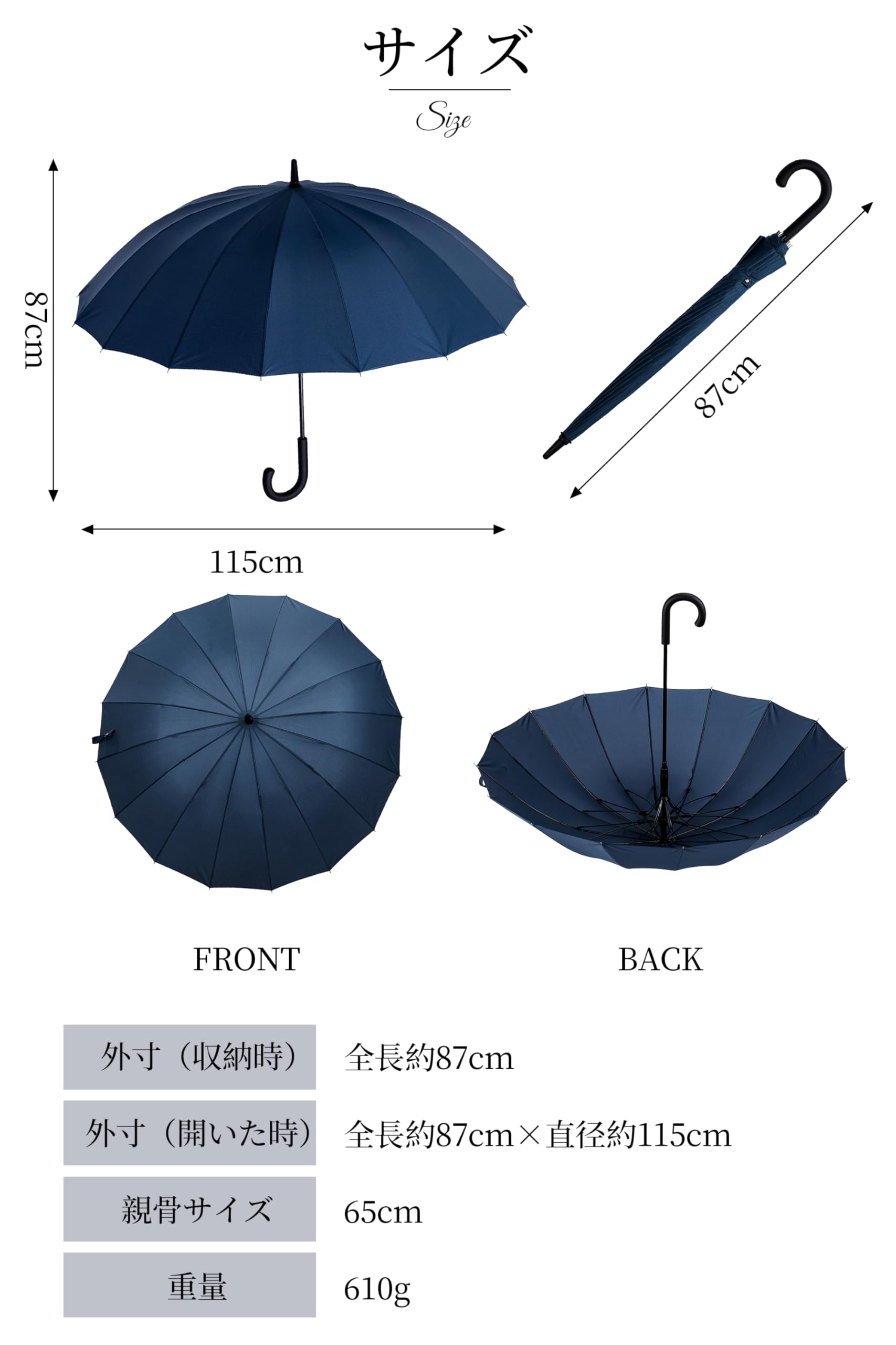 [SUKIO] 長傘 16本骨グラスファイバー 65cm 大人の傘の模範解答 無地 ワンタッチで開くジャンプ傘 超撥水 Teflon加工 晴雨兼用 傘袋付き