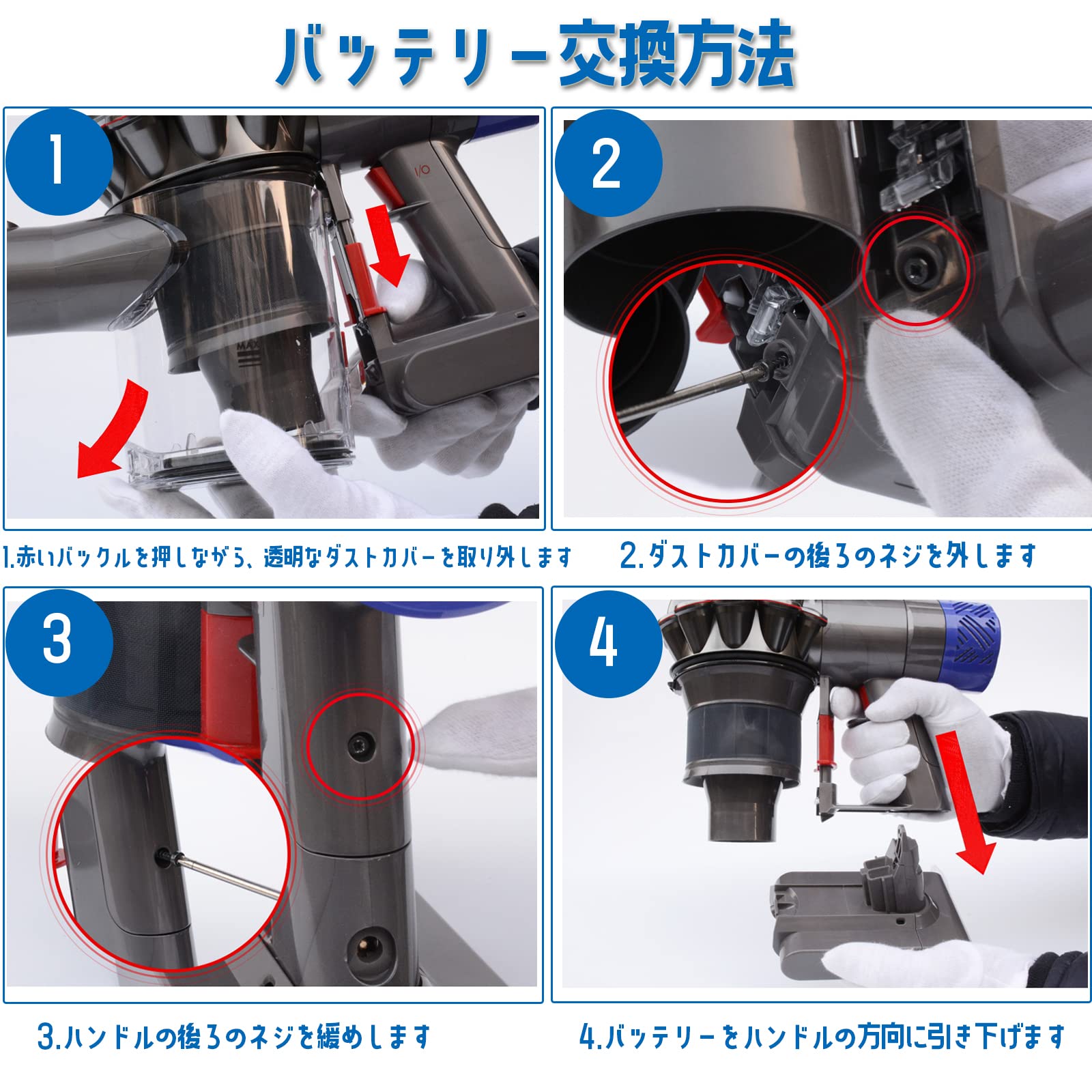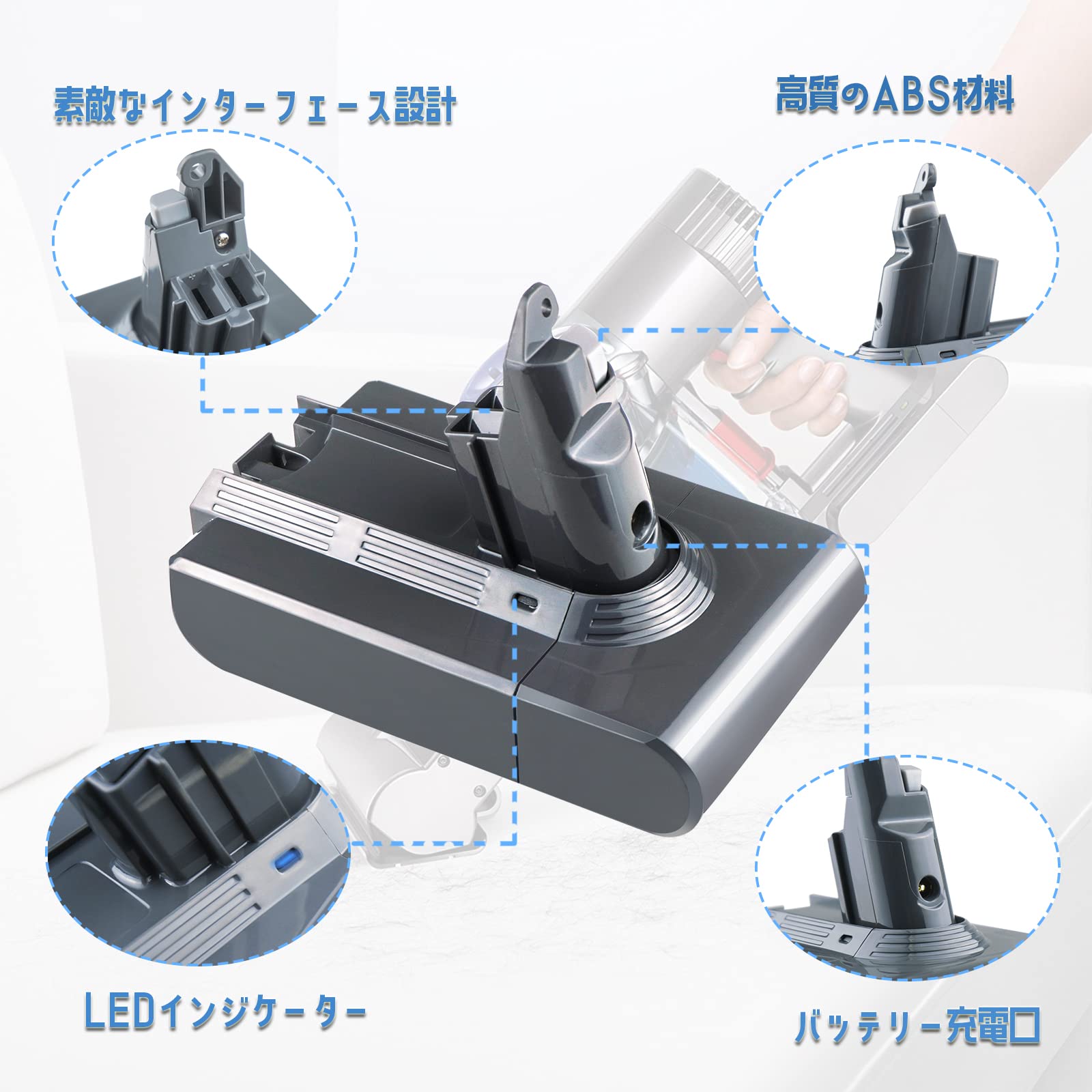 【Dyson バッテリー対応機種】ダイソンV6 DC58/DC59/DC61/DC62/DC63/SV03/SV04/SV05/SV06/SV07/SV08 V6Absolute V6Trigger V6 Fluffy V6 Flexi V6 Motorhead V6 Standard V6 Total Cleanなどのダイソン機種に交換できます。