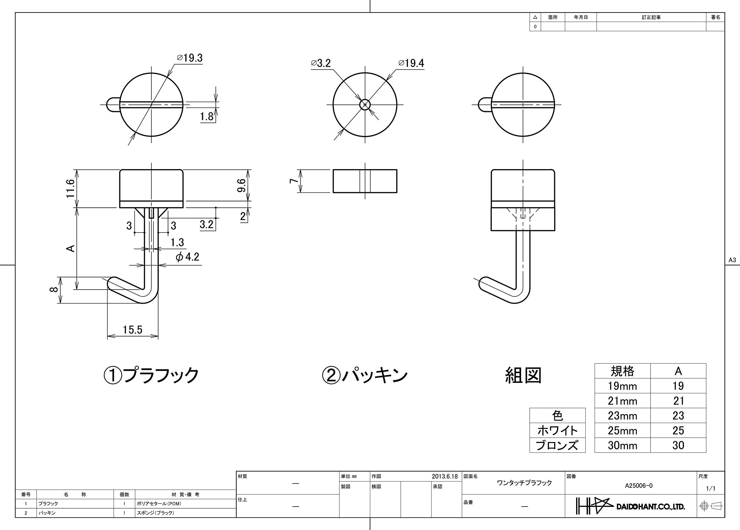 ダイドーハント (DAIDOHANT) (波板フック) ワンタッチプラフック 白 (呼び径d) 4.2 x (長さL) 25mm (100本入) 32448