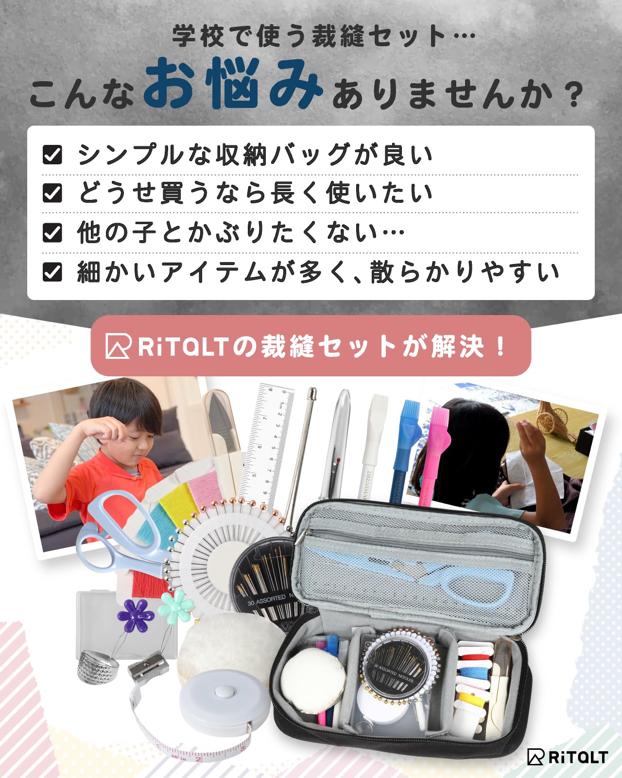 【数量限り】RiTaLT 裁縫セット ソーイングセット 大人 小学生 女の子 男の子 小学校 裁縫道具 セット (ブラック)