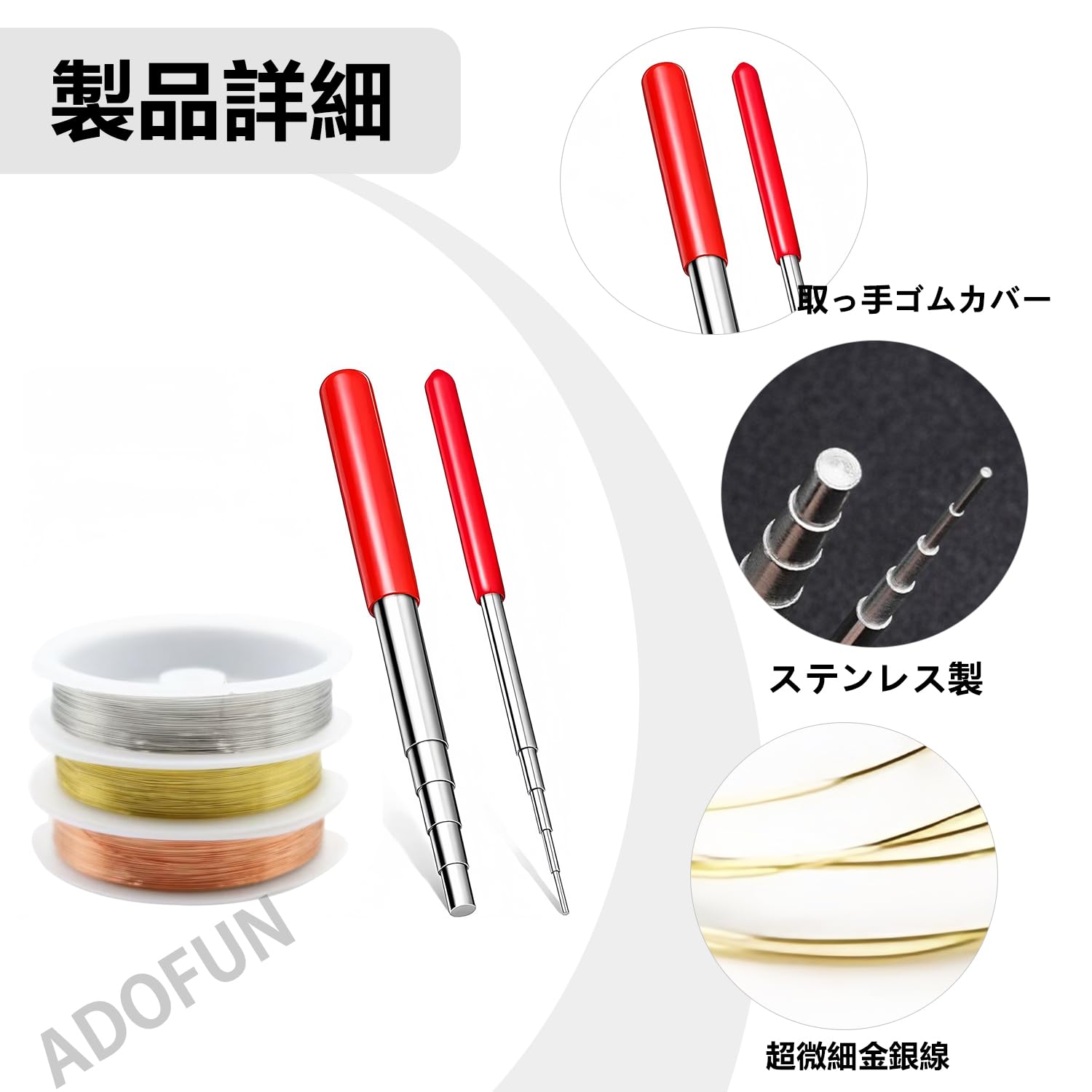 【高品質の素材】アクセサリーワイヤー は高品質の銅で作られ、防錆性・耐久性に優れて、精美で頑丈でがあります。金属製の光沢のあるアルミニウム製のワイヤーは、消えず、非腐食性もありません。鉄線巻線棒の本体は鋼材を採用し、丈夫で壊れにくいです。ステンレス鋼製のため、錆びにくくて見た目も良いです。