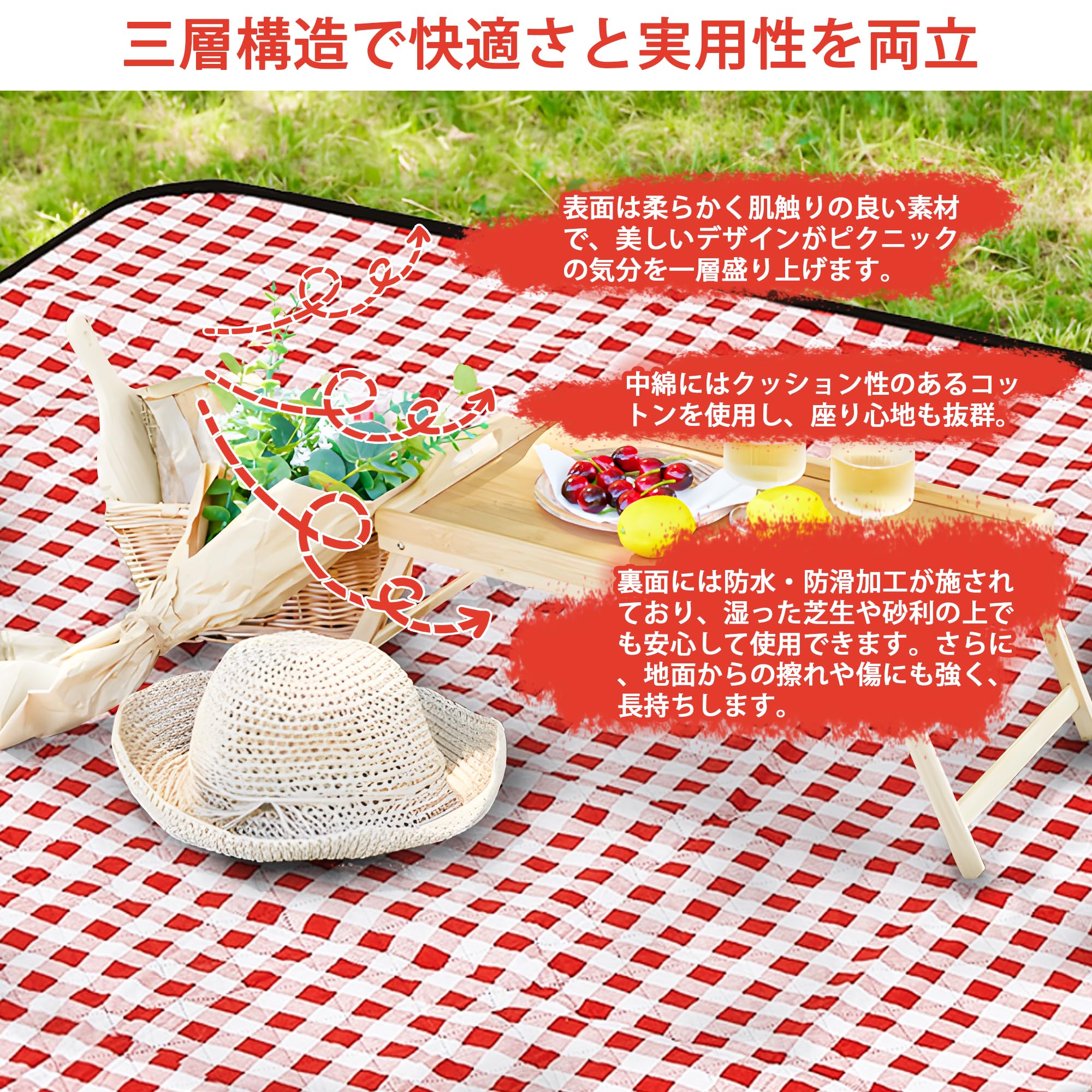 【丈夫で耐久性抜群】このレジャーマットは厚手で丈夫な素材を使用しており、長時間の使用にも耐えられます。キャンプ用品として、ピクニックやキャンプだけでなく、ビーチやスポーツ観戦にも最適です。