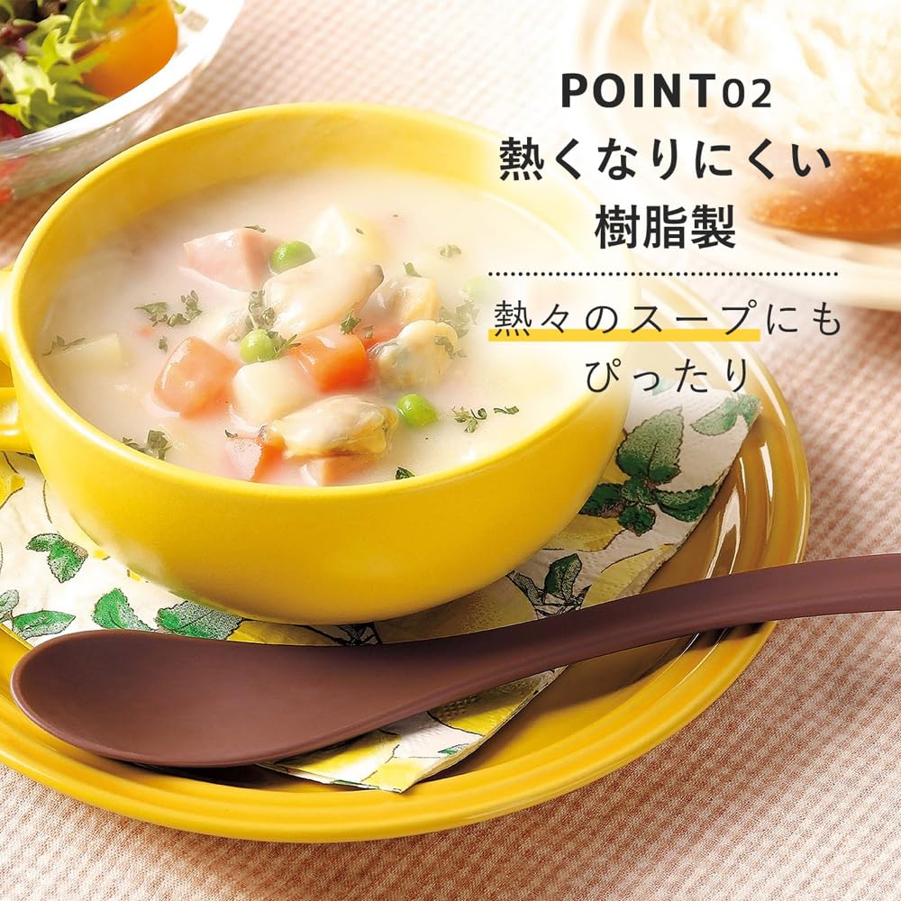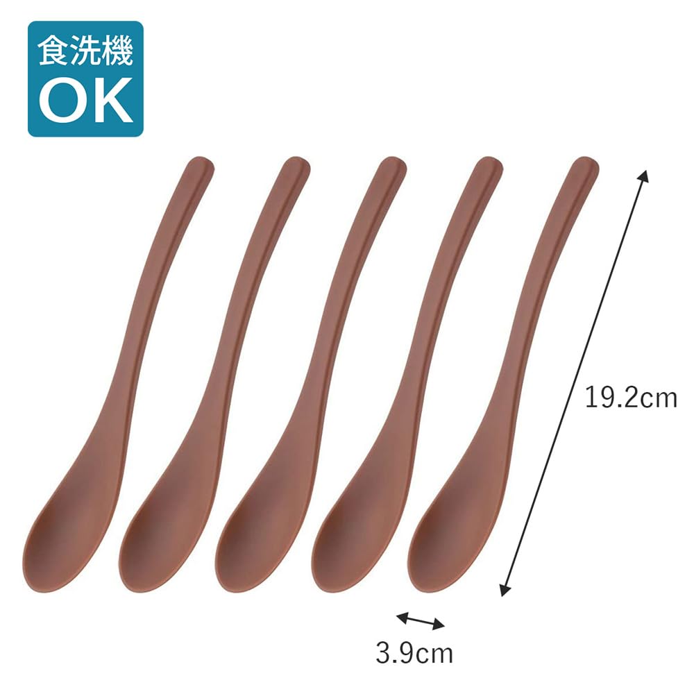 下村企販 食べやすい スプーン 5本組 【日本製】 食洗機対応 スープもすくえる レンゲ 全長19.2cm カレー 丼ぶり スープ デザート 炒飯 介護 子ども 女性 ブラウン れんげ 燕三条 38760