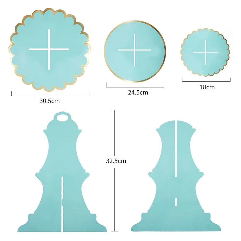 ケーキスタンド 使い捨て 3層 紙製ケーキスタンド 多層スタンド デコレーション デザートディスプレイスタンド 誕生日パーティー 結婚式 アレンジメント用品 (グリーン)