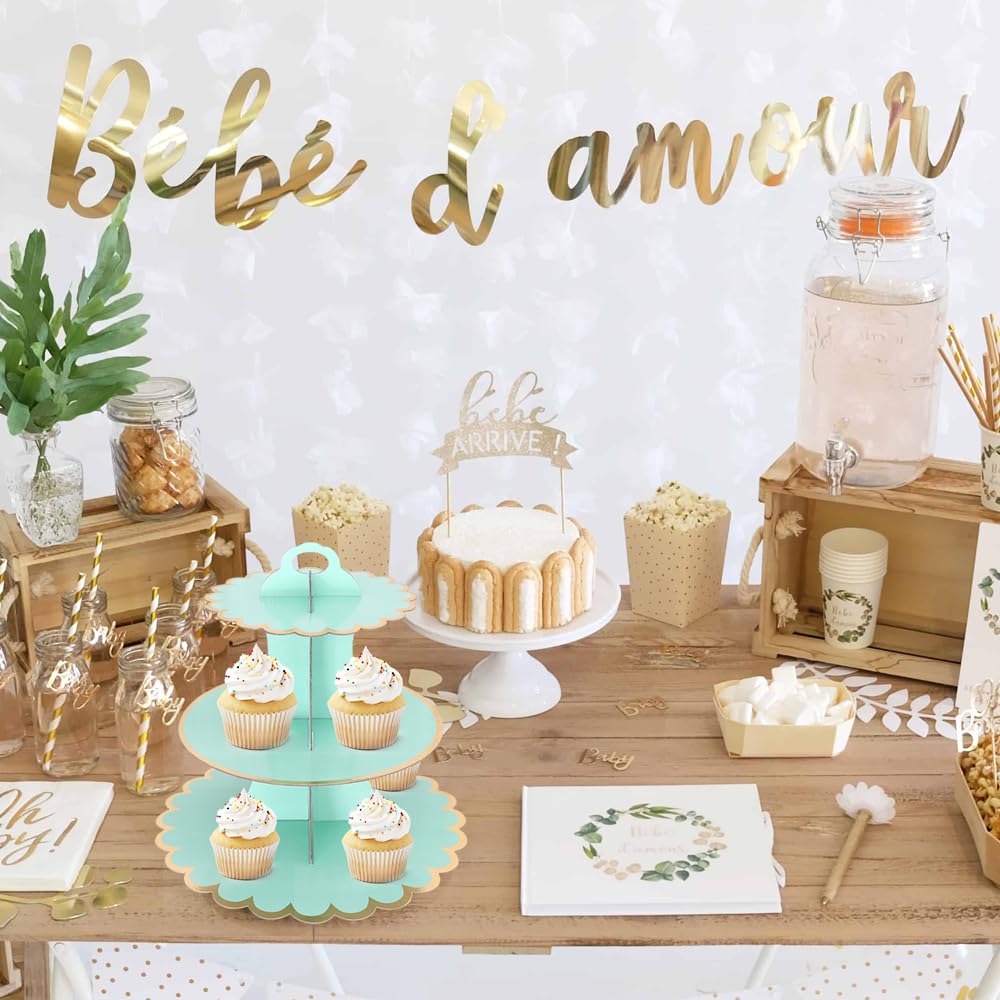 【雰囲気作りが簡単】エレガントな 3 層式紙製ケーキスタンドで、インスタ映えする高級感を持ち、瞬時にスイーツテーブルの雰囲気をアップグレードし、パーティにロマンチックでドリーミーな雰囲気を演出します!