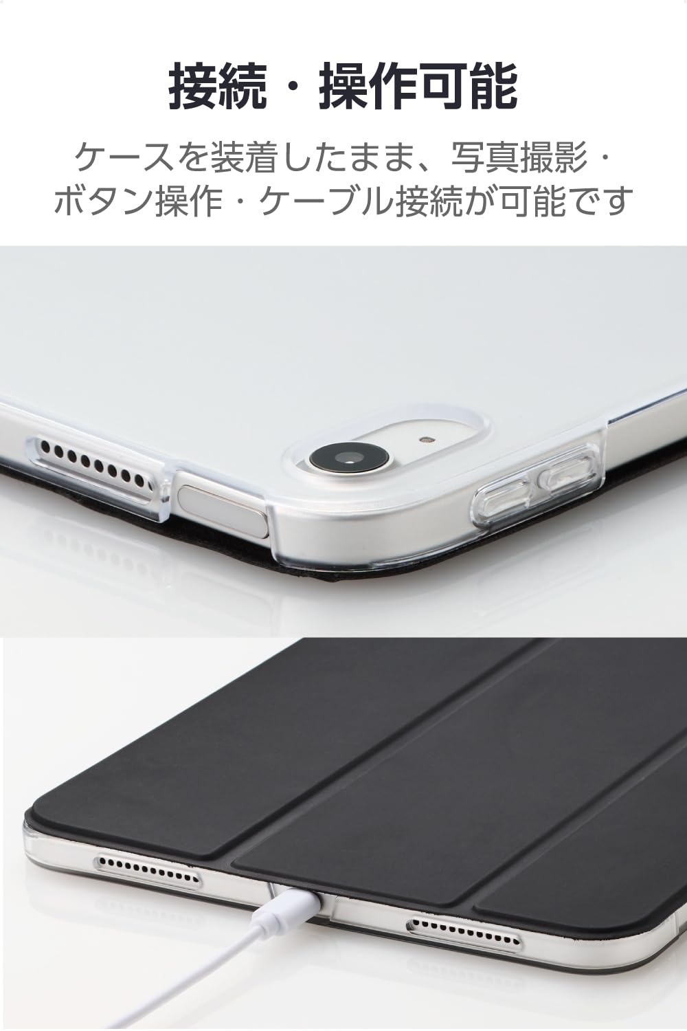 ■ケースを装着したままで画面の確認、充電、各種ボタン操作が可能です。