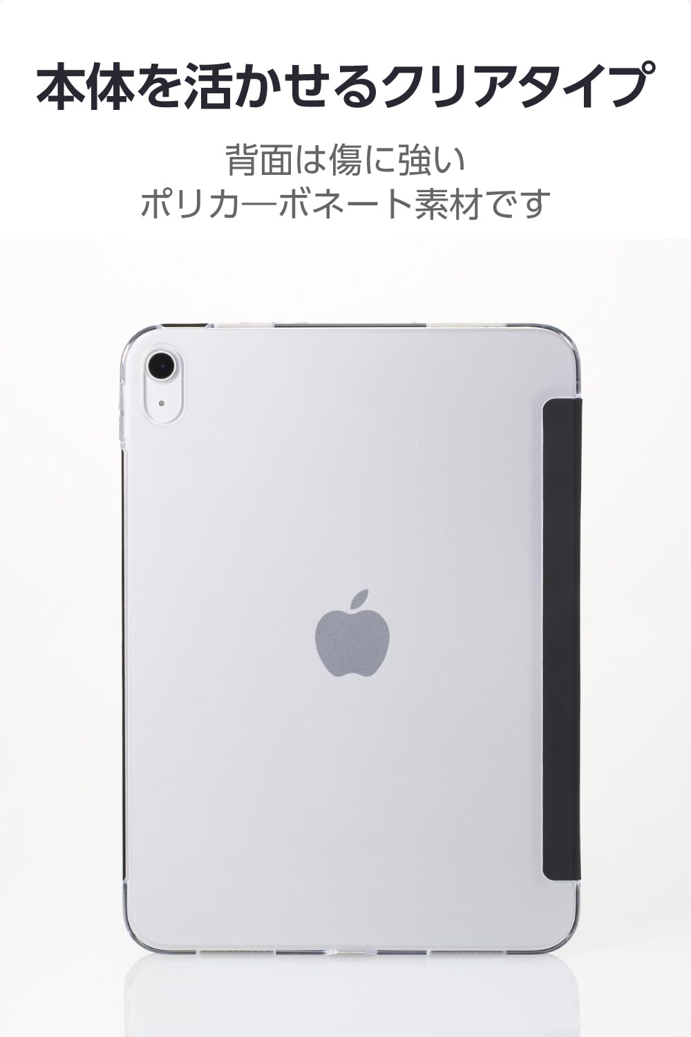 傷に強いポリカーボネートを使用し、本体の背面デザインを活かせるクリアケースを採用しています。