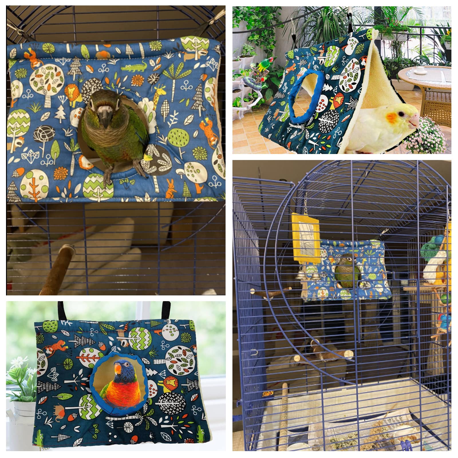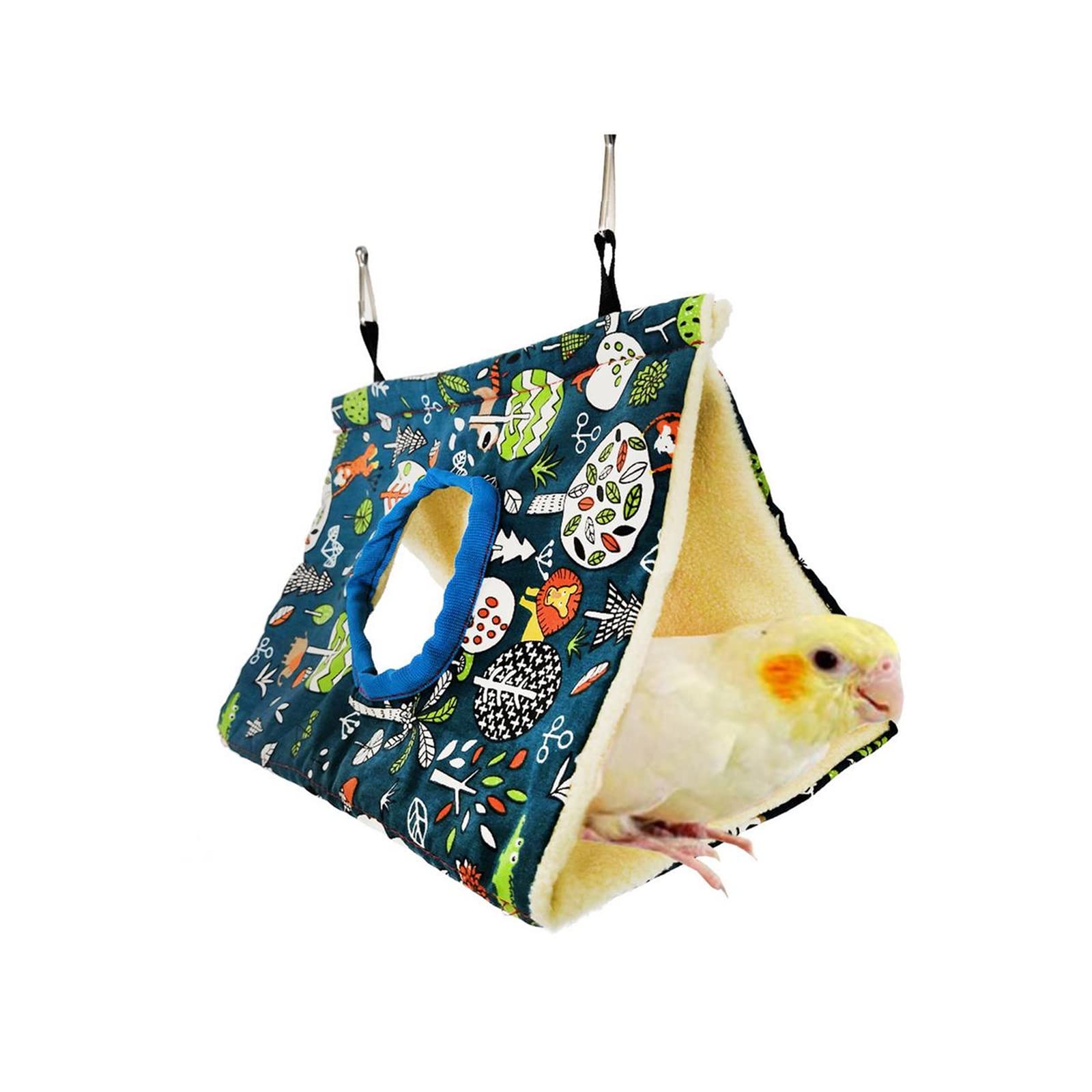 【在庫処分】小動物 ハンモック 鳥の巣 インコ オウム ハンモック 文鳥 寝床 三角ハウス 吊り下げ ペットハウス バードテント 寒さ対策 鳥のおもちゃ (S ブルー)