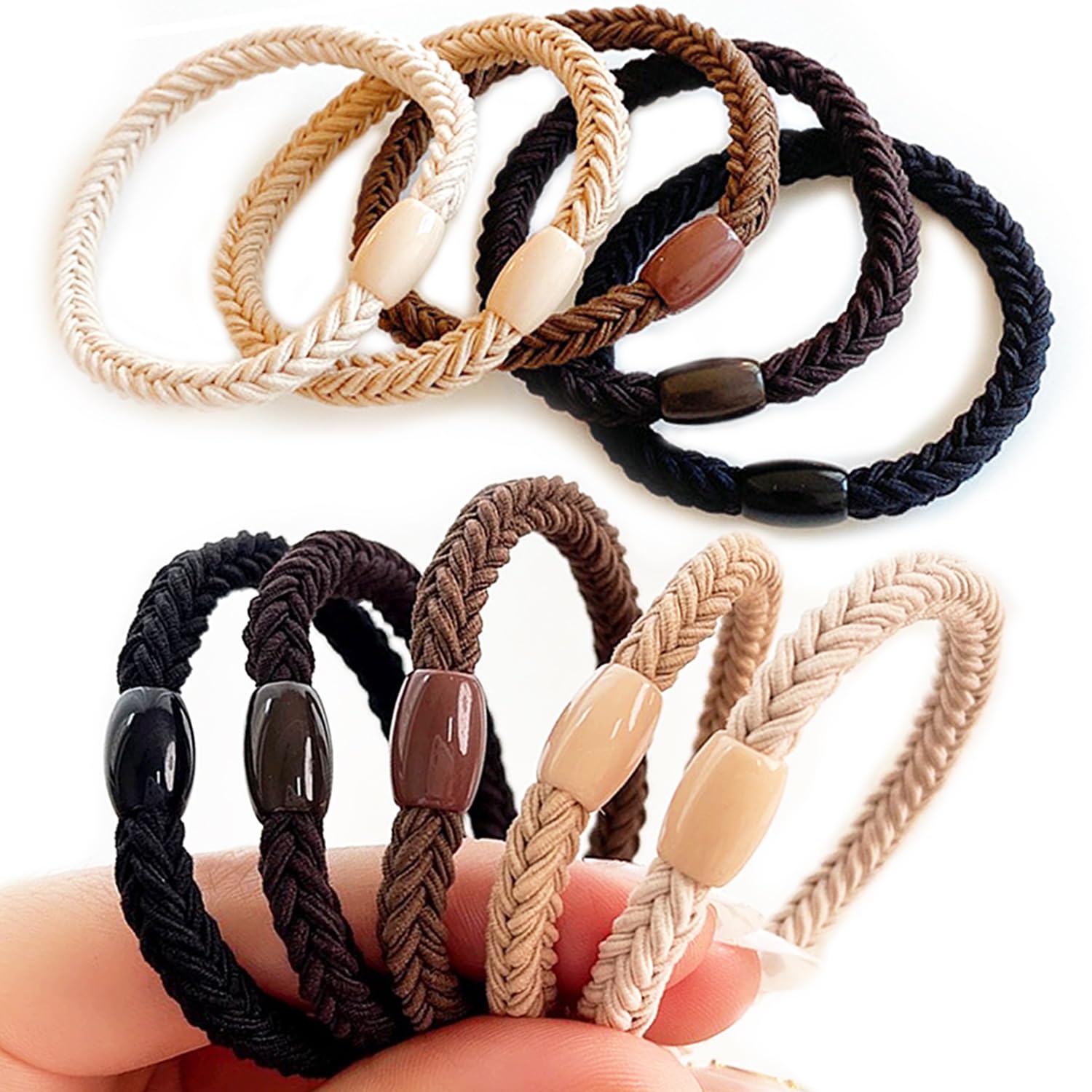 [アオラー]Aollaaヘアゴム 髪ゴム【立体六つ編みロープ風5色10個入】韓国風 メンズ レディース おしゃれ大人ヘアゴム ヘアアクセサリー くすみカラー シンプル 無地 髪馴染み良い アースカラー エレガント ヘアリング 髪留めゴム ヘアアレンジ(ブラウン系10本)