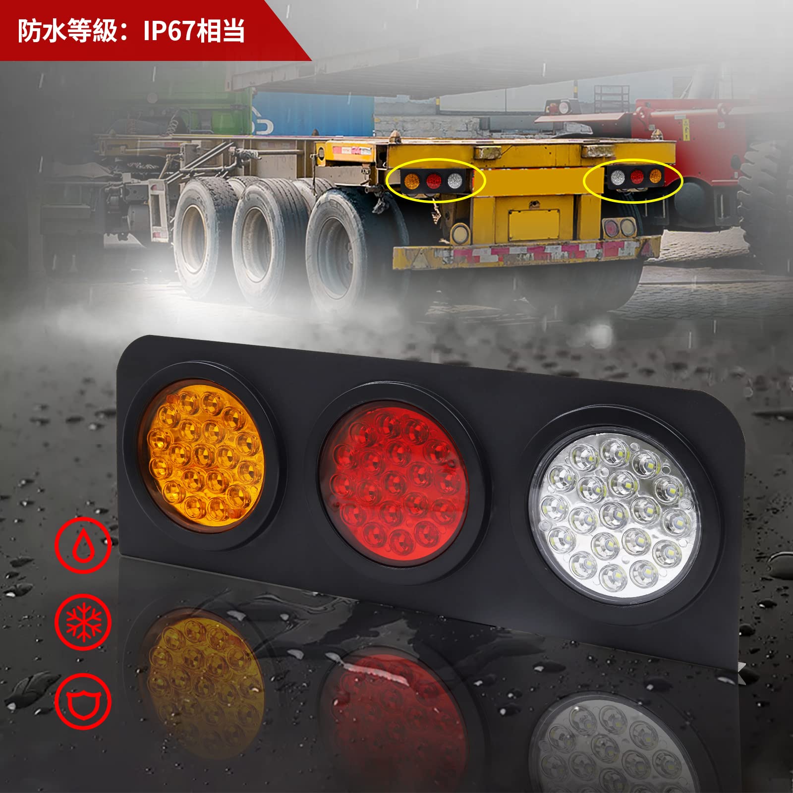 ★【防水耐震】トラック テールランプ LEDは、黄、赤、白3つのライトをゴム保護層で密封しています。それで、雨の日のお出かけも洗車時も、水の侵入をある程度に防ぐことができます。また、走行時、ゴム保護層が振動や衝撃を緩めてライト本体への障害を減らします。