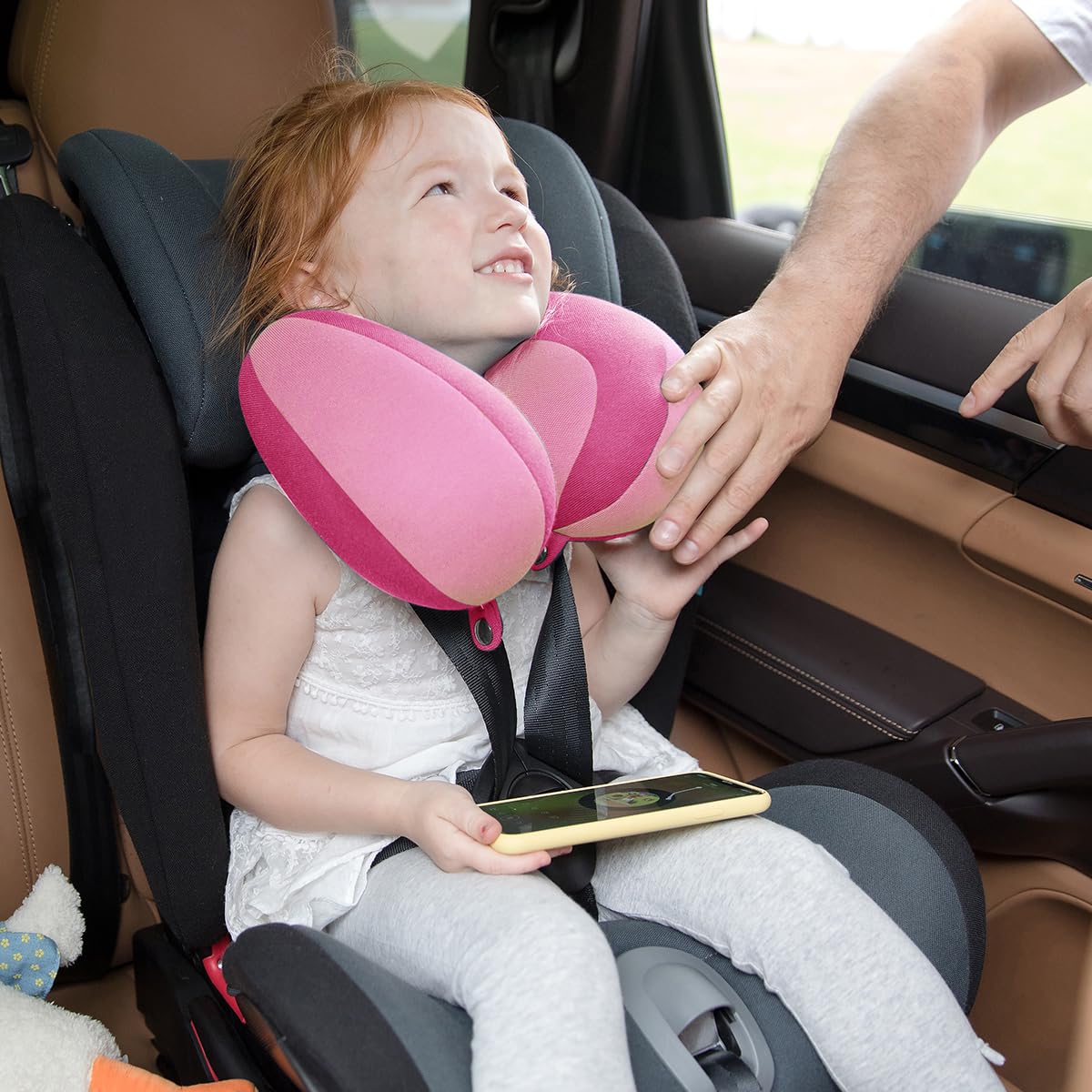 ネックピロー 子供用 旅行枕 首枕 キッズ 頭全体サポート トラベルピロー U型枕 通気性よい 携帯枕 飛行機 車 自宅 バス オフィス 旅行用 まくら(ピンク))
