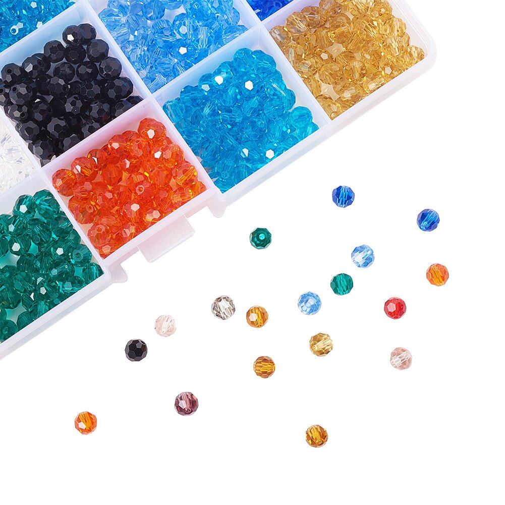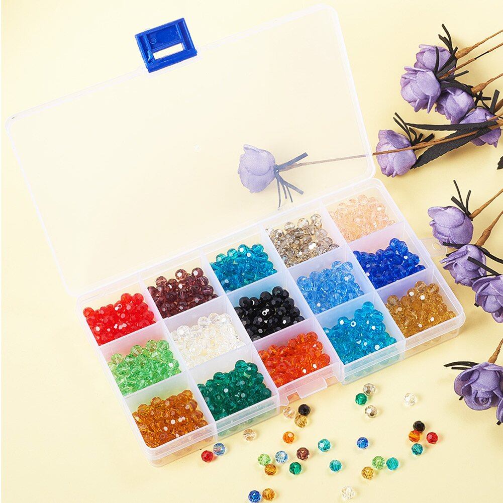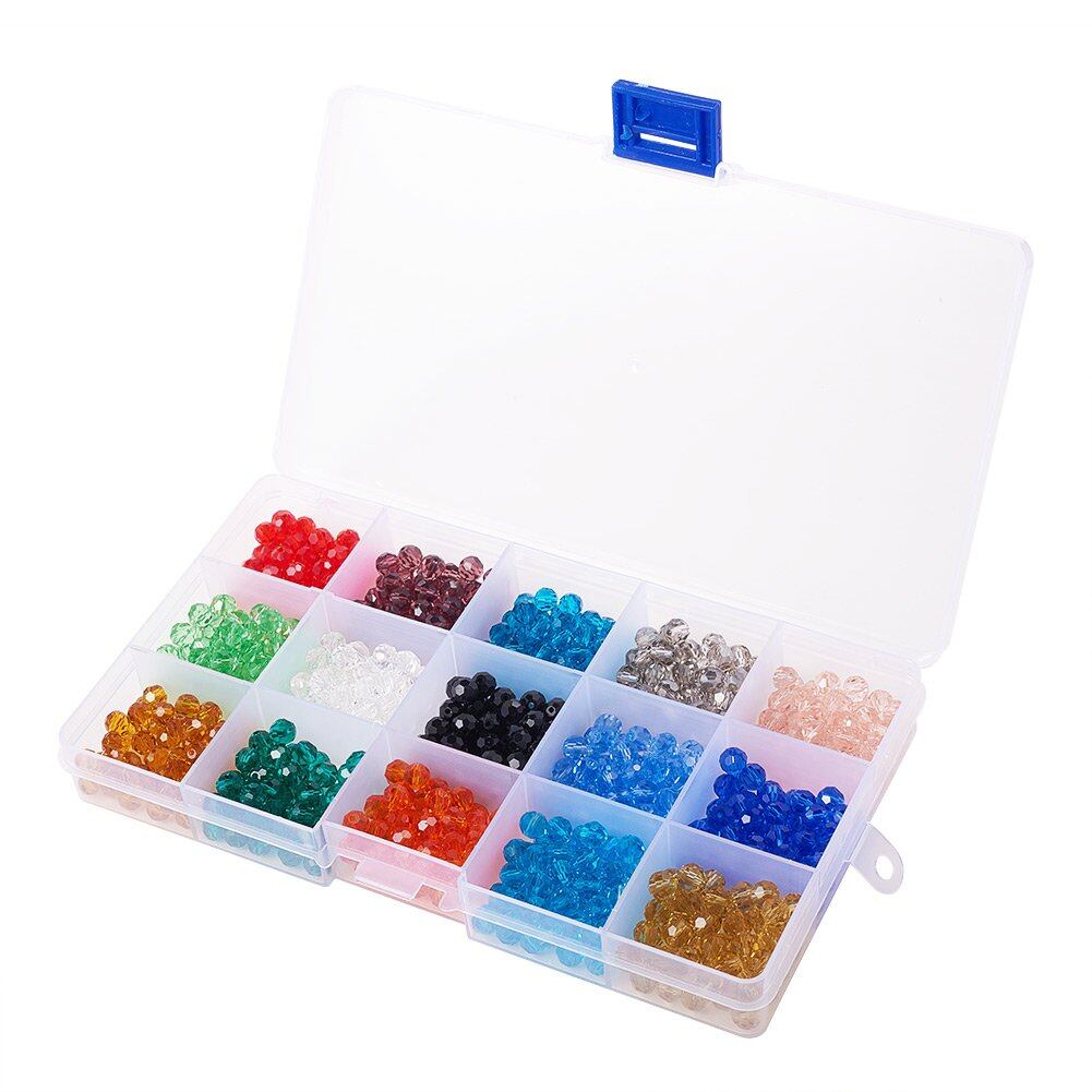 PH PandaHall 約750個/箱 6mm 15色 ガラスビーズ そろばん 多面的 カット オーストリア ビーズ ジュエリー用 UVレジン 封入 DIY用 手芸材料 手作り 素材 ハンドメイド 混合色