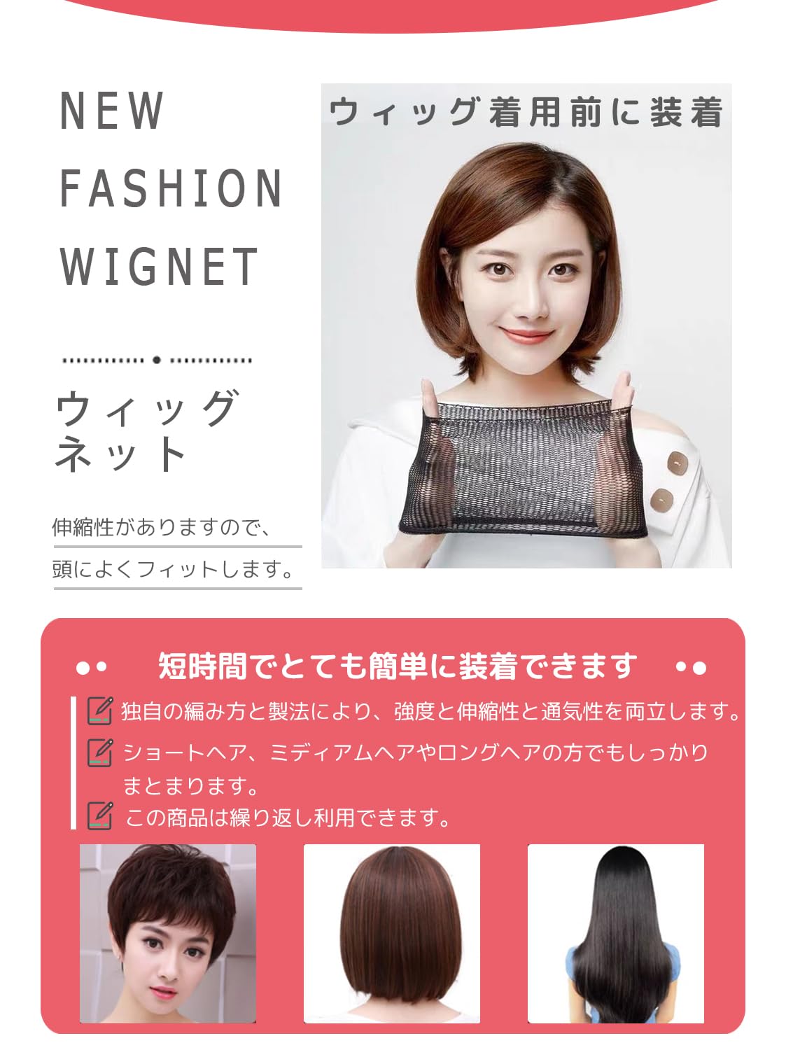 【ウィッグ着用前に装着】ネットを被って中の髪をまとめるだけなので短時間でとても簡単に装着できます。ボリュームが気になる方やロングヘアの方でもしっかりまとまります。
