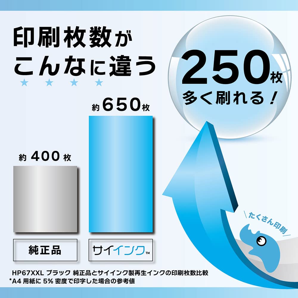【数量限り】サイインク (HP互換)リサイクルインク 67XXL / 67XL ブラック+カラー (増量)