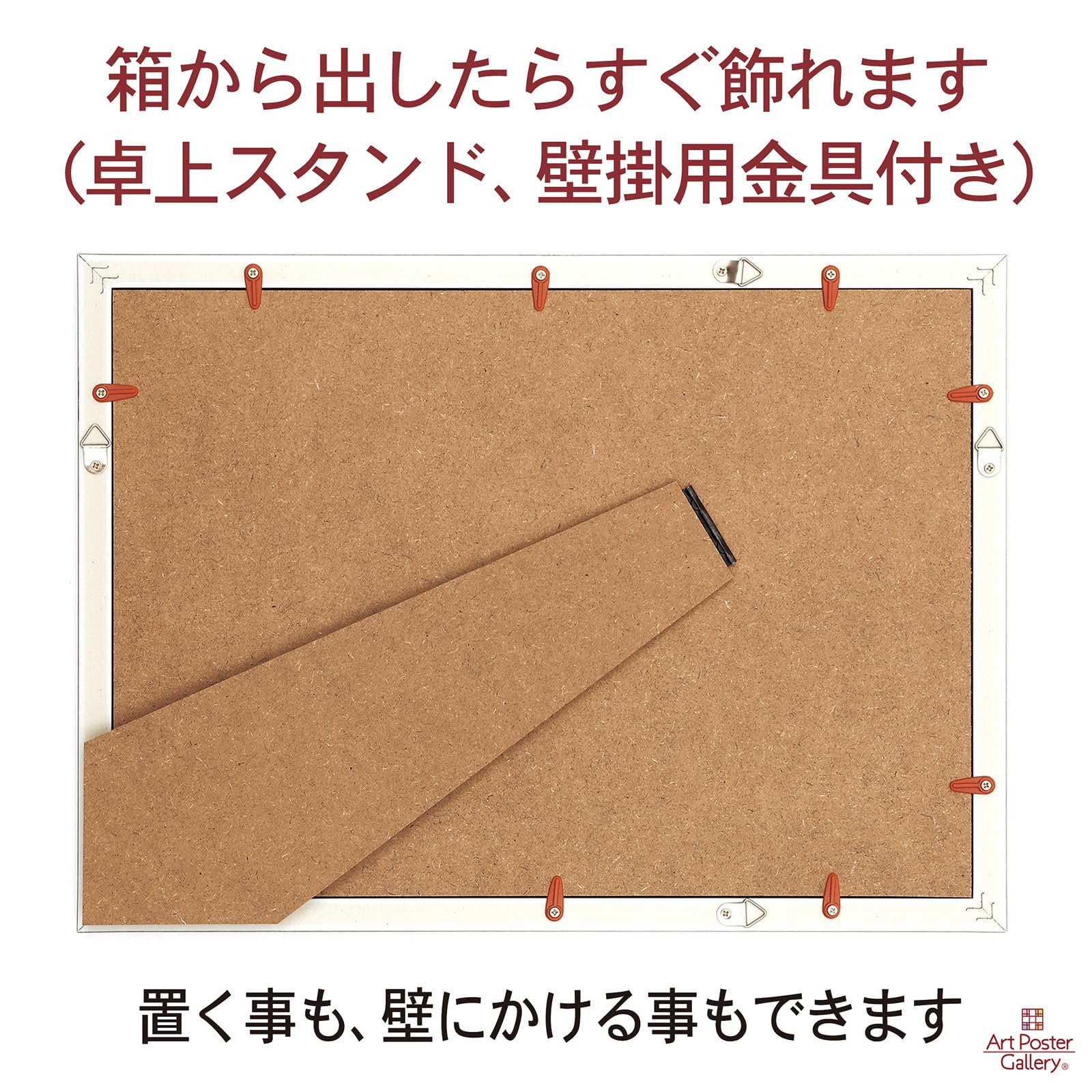 【特徴3】卓上、紐付き。置く事も、壁にかける事もできます。箱から出せばすぐ飾れます。縦横どちらでも対応できます。