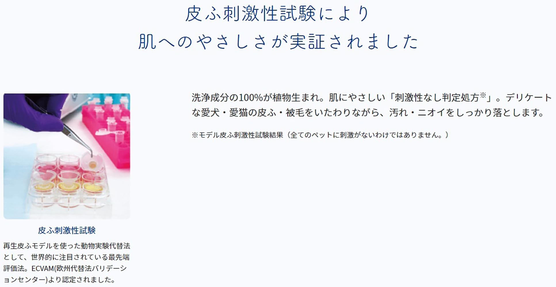 洗浄成分の100%が植物生まれの低刺激性。モデル皮ふ刺激性試験により刺激性なし判定をうけました。うるおい成分アミノ酸配合。天然クレイ成分のバリアー効果により、乾燥後の皮ふ・被毛をブラッシング摩擦や刺激物質などから守ります。リンス成分により、被毛をふんわりなめらかに。