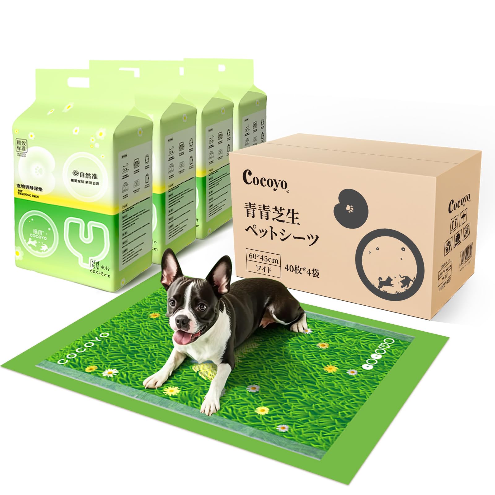 【努力特価】ペットシーツ 芝生柄入り 中厚型 ワイド 40枚*4袋 トイレシート 犬 ペットシート 瞬間吸水 逆戻り防止 ペット用 しっかり超吸収 テープ付き (4袋 ワイド)