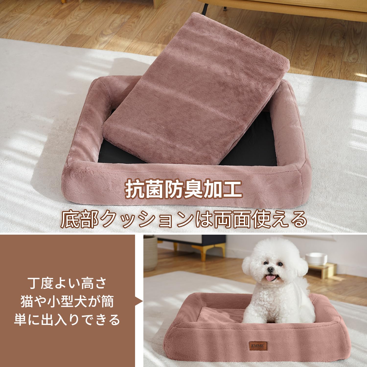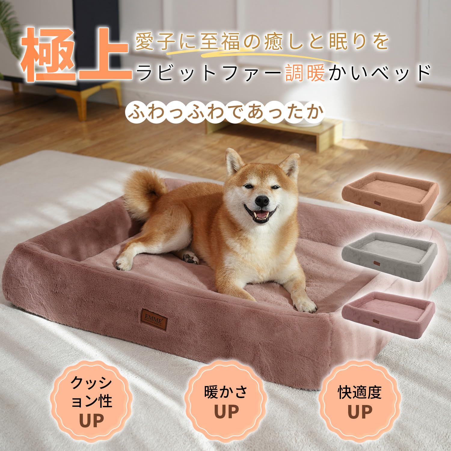 EMME 3D犬 ベッド暖かい ペットベッド 中綿無しフェイクラビットファー 極上のタッチ ペットソファー ペットベッド 洗える 全週ウレタン 中綿無し 高反発 高齢犬 子犬 猫 多頭飼い 取り外せるカバー 滑り止め オールシーズン ペット用ベッド 中型犬 大型犬67x51x12.5cmあずき色 Mサイズ