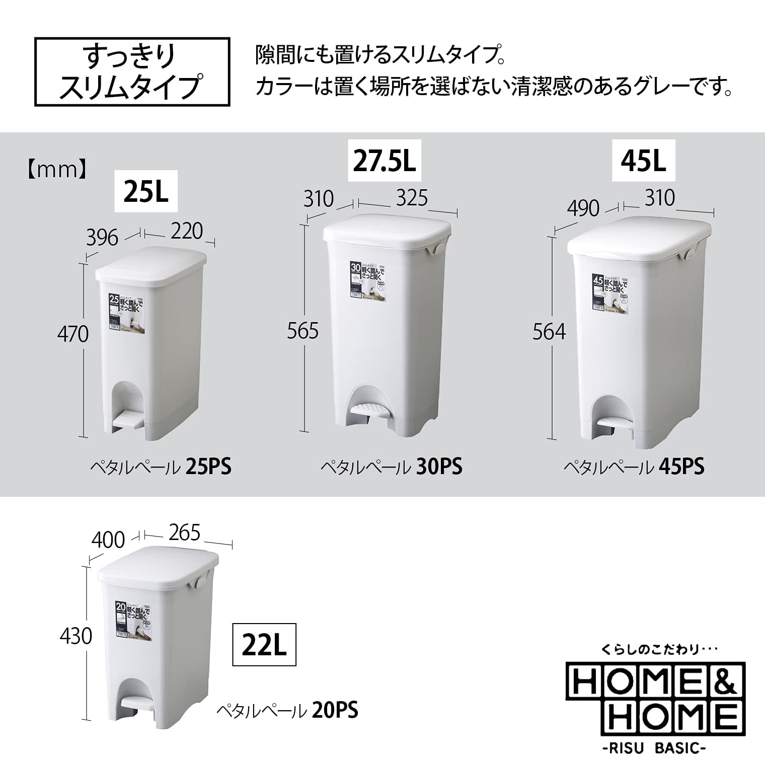 【数量限り】リス ゴミ箱 ペダルペール ポリ袋フック付 グレー 45L H&H 45PS