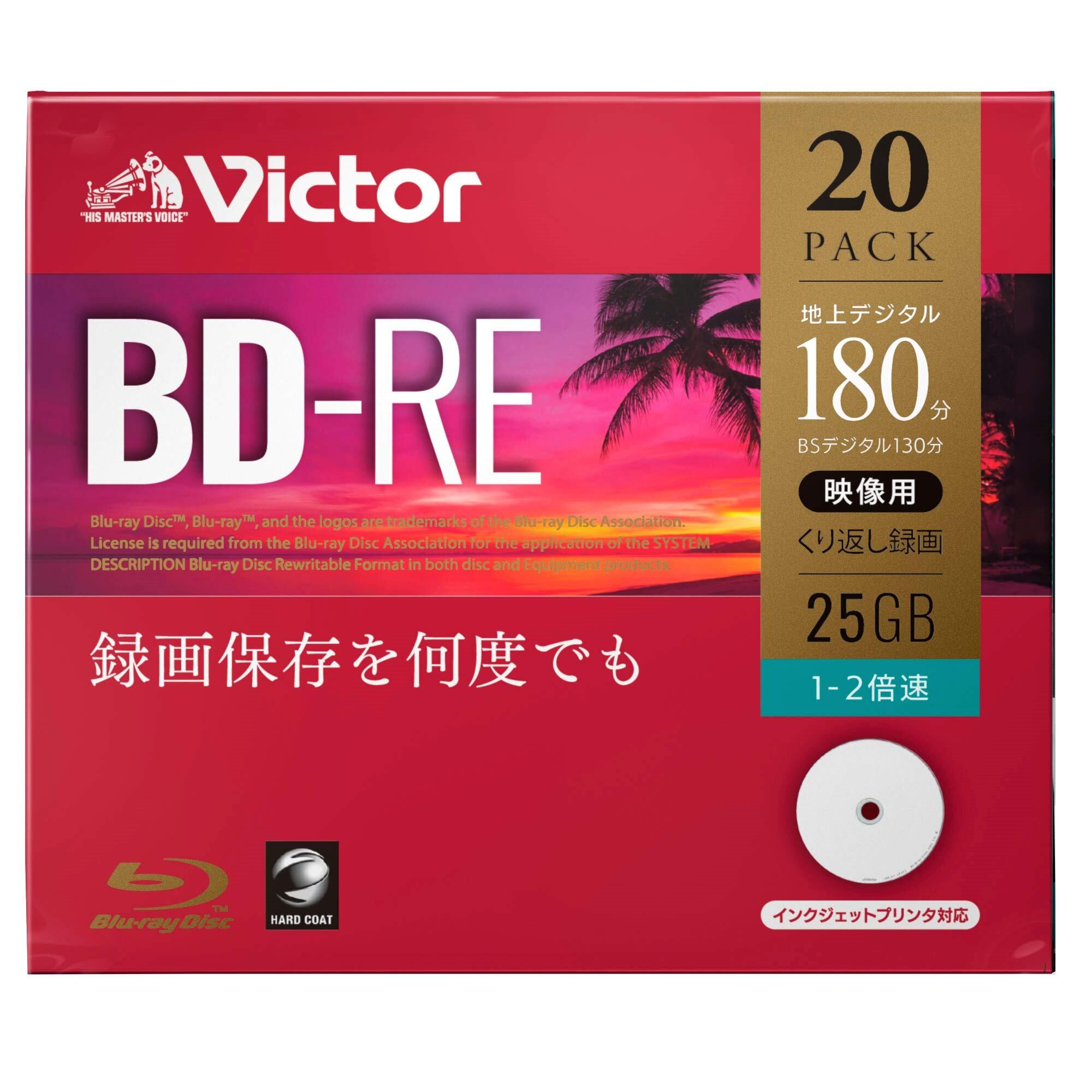 【在庫のみ】ビクター Victor くり返し録画用 ブルーレイディスク BD-RE 25GB 20枚 ホワイトプリンタブル 片面1層 1-2倍速 VBE130NP20J1