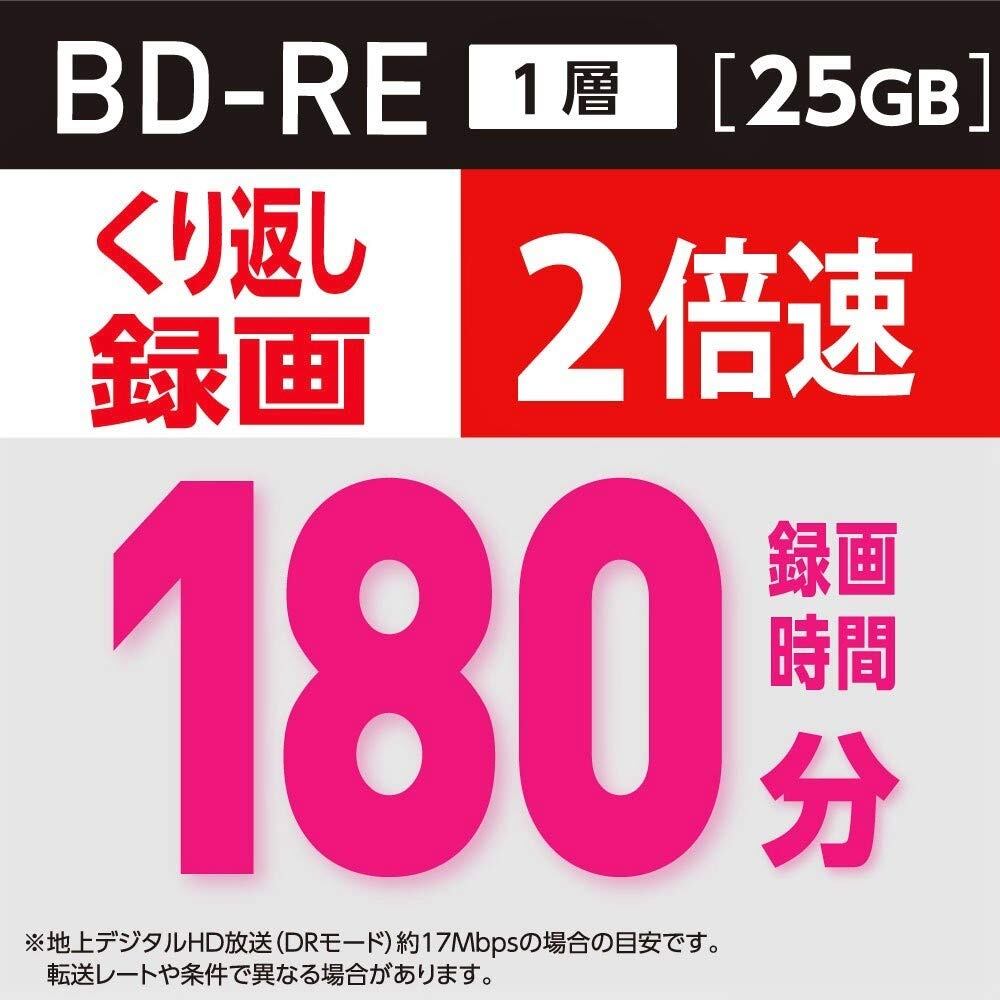 くりかえし録画用ブルーレイディスクBD-RE/1-2倍速記録対応/1層25GB/インクジェットプリンタ対応/ホワイトディスク