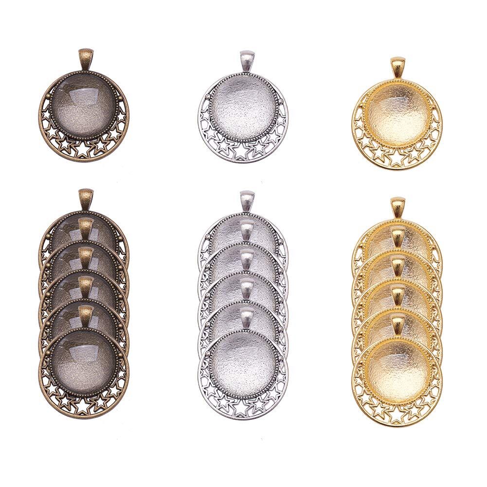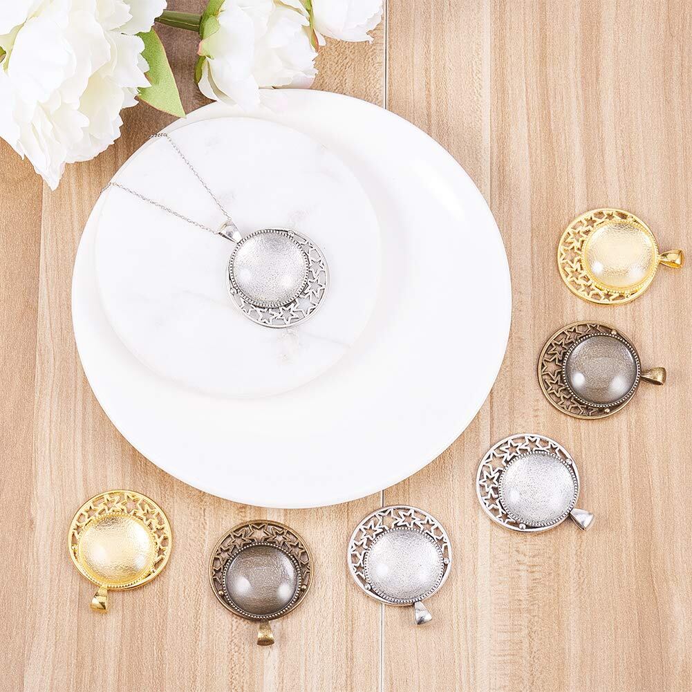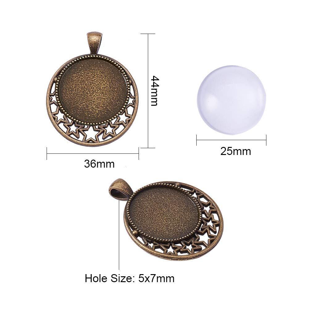 ?【サイズ】:ペンダント:トレイ: 25mm; 44x36x2mm,穴: 5x7mm, 6個/色, 18個;ガラスカボション: 24.5~25x6~7mm, 20個.
