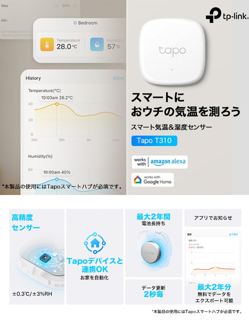 [Tapo スマートハブ必須] 本製品をお使いいただくためにはTapo スマートハブ が必要です。