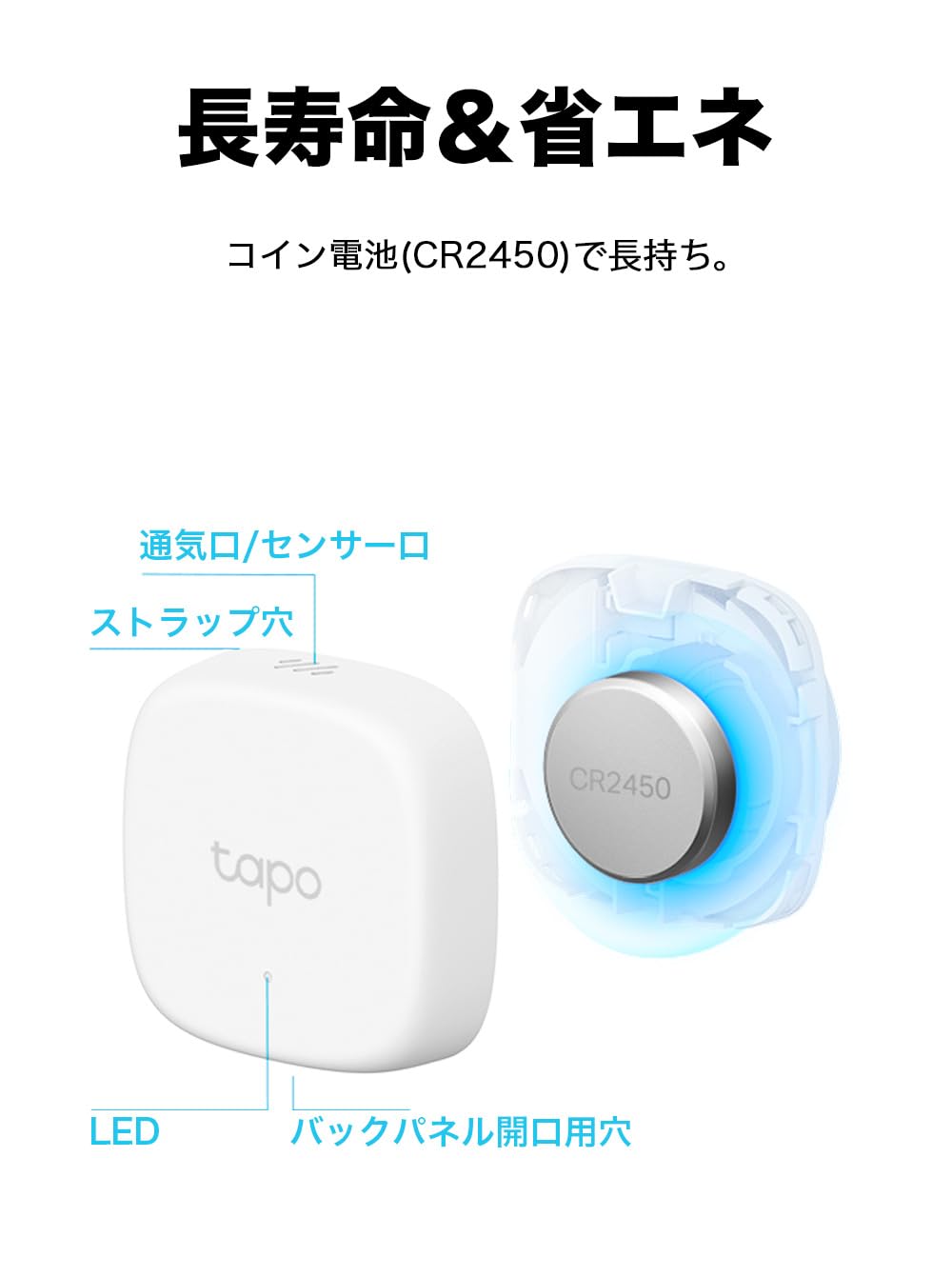 [省電力&長寿命]超低電力無線規格Sub-1GHZで通信するため、 コイン電池(CR2450)ひとつで長寿命