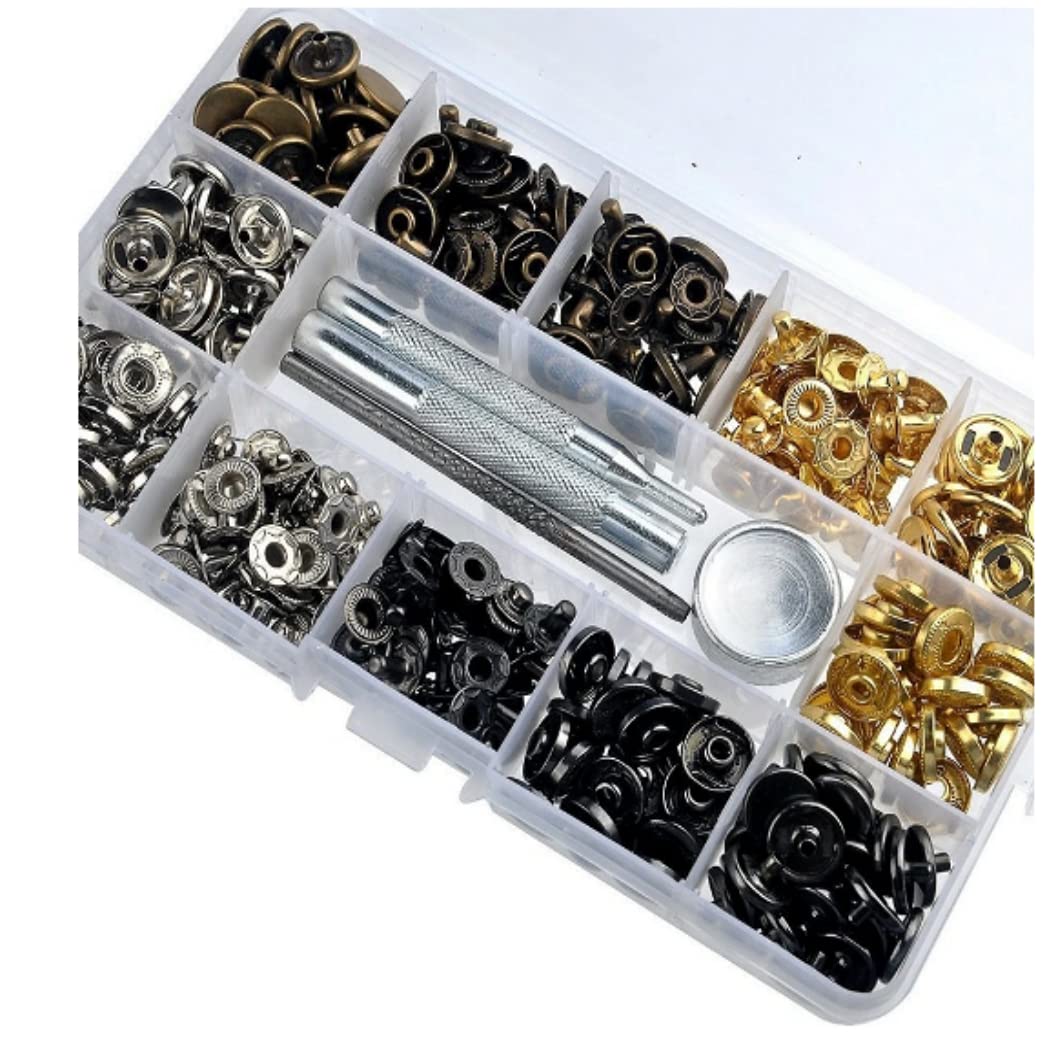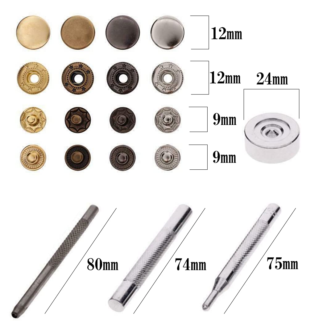 【人気】HappyHome カシメ スナップボタン 打ち具 セット レザークラフト工具 ホック打ち DIY パーツ 12mm 120ピース入