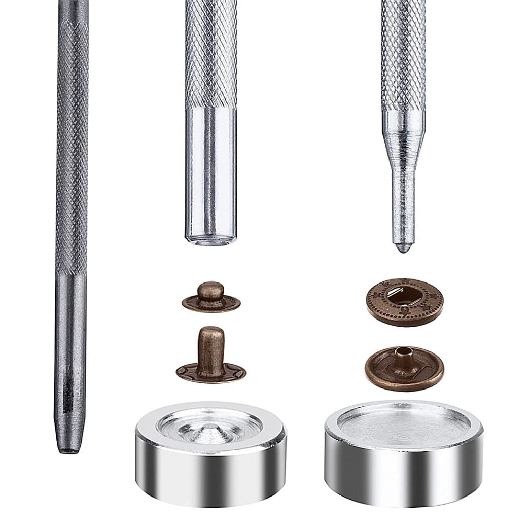 手芸、修理用カシメセット!使用方法は簡単! 初心者でも簡単に革製品などのハンドメイド作品にボタンを取付できます。